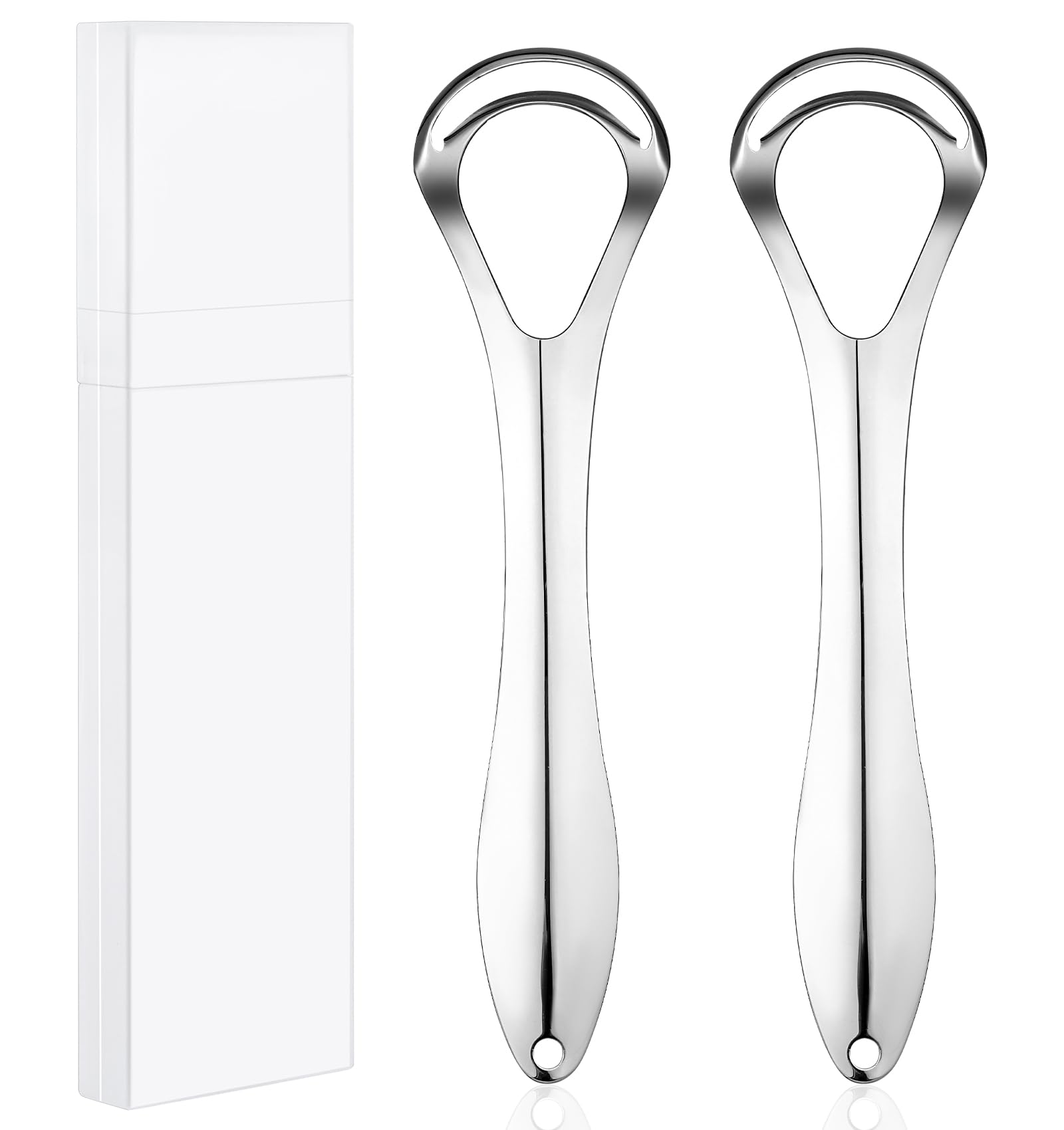 2 Pcs Stainless Steel Tongue Scraper, Dual Scraping Head Tongue Scrapers with Case for Adults, Deep Clean, Bad Breath Gone and Help Improve Oral Hygiene