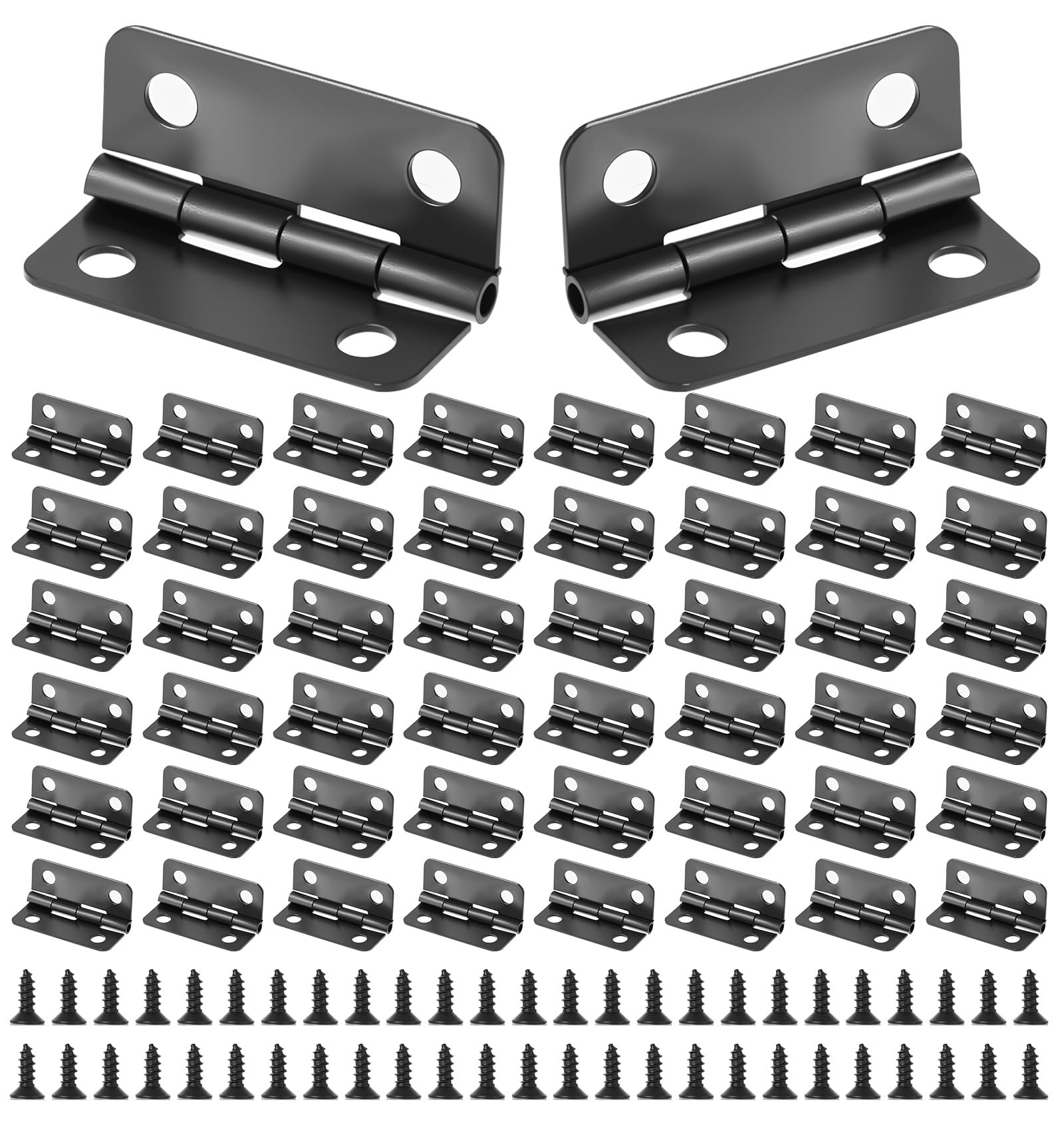 Black Small Butt Hinges with Screws, Stainless Steel Folding Butt Hinges with Screws, Suitable for Jewelry Box Cabinet and Lightweight Craft Projects