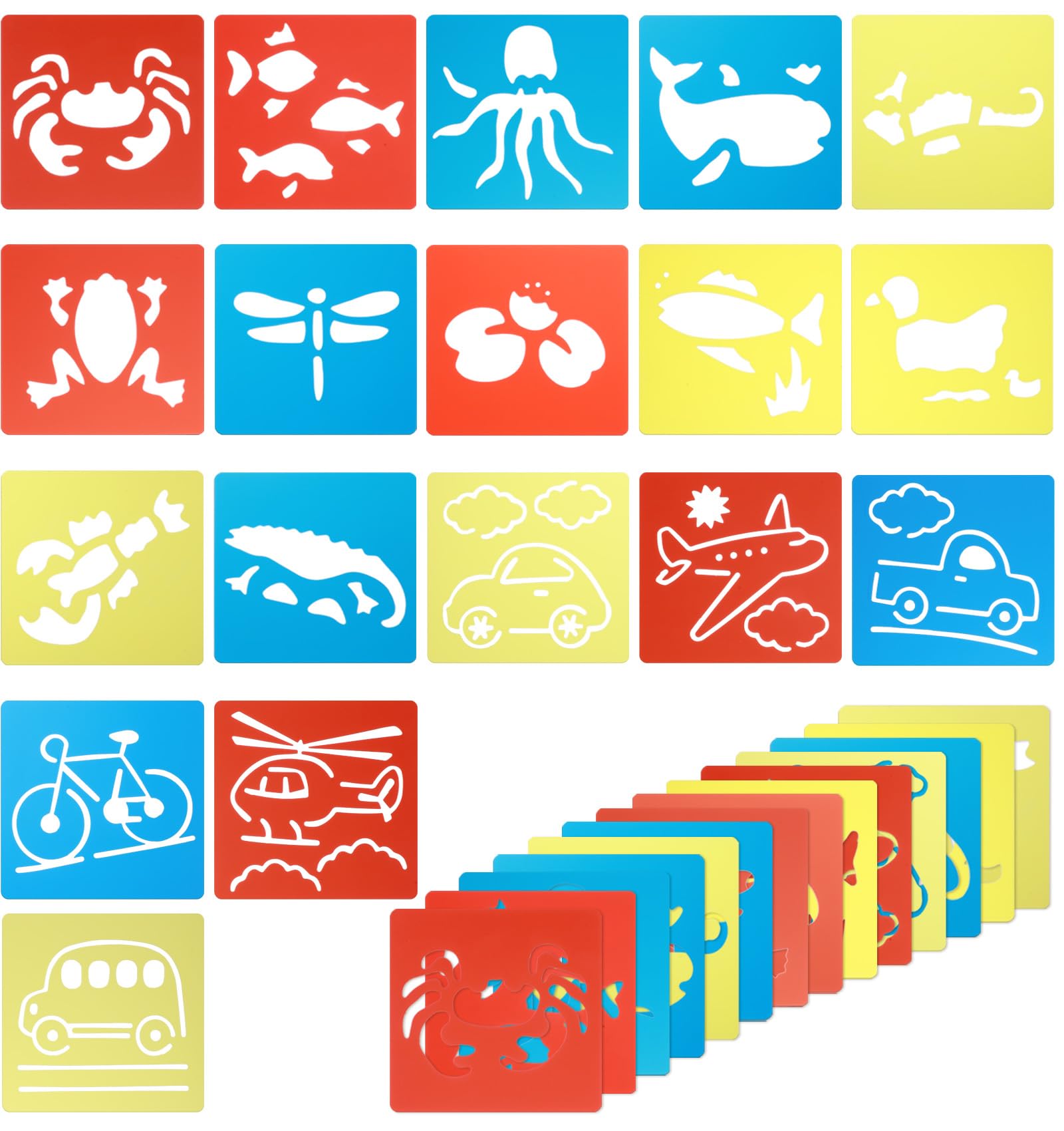 Chalk Stencils, 15Pcs Chalk Stencils for Kids Outside, Durable Safe Material Easy to Clean for Paper Painting, Spray Paint Graffiti, Chalks Creation