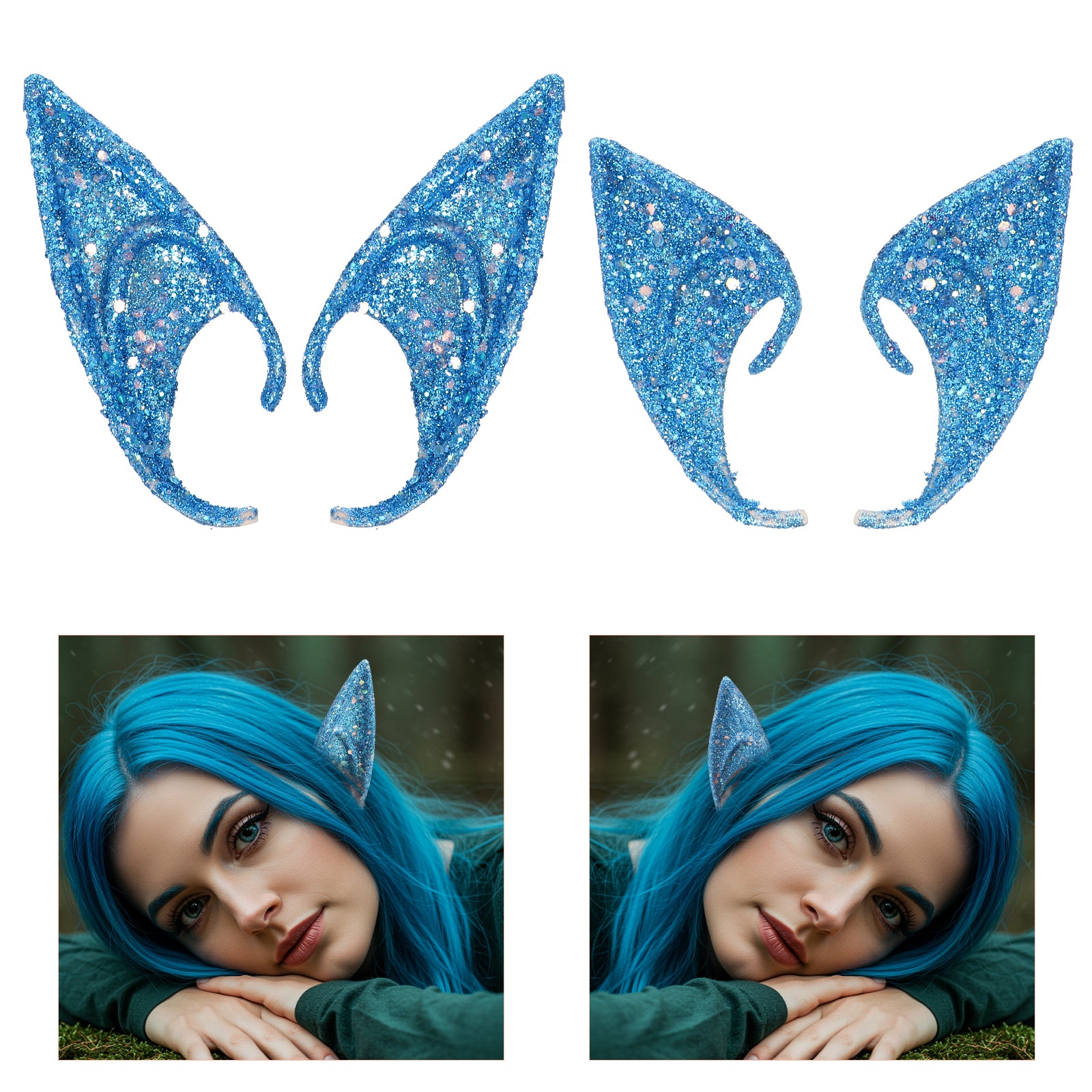 Classicseali 2 Pairs Elf Ears Adult, Glitter Fae Ears for Women, Lightweight and Durable, Reusable Hobbit Ear, for Cosplay Fair Costumes, Halloween Parties, Christmas, Birthday, Movie Shooting, Blue