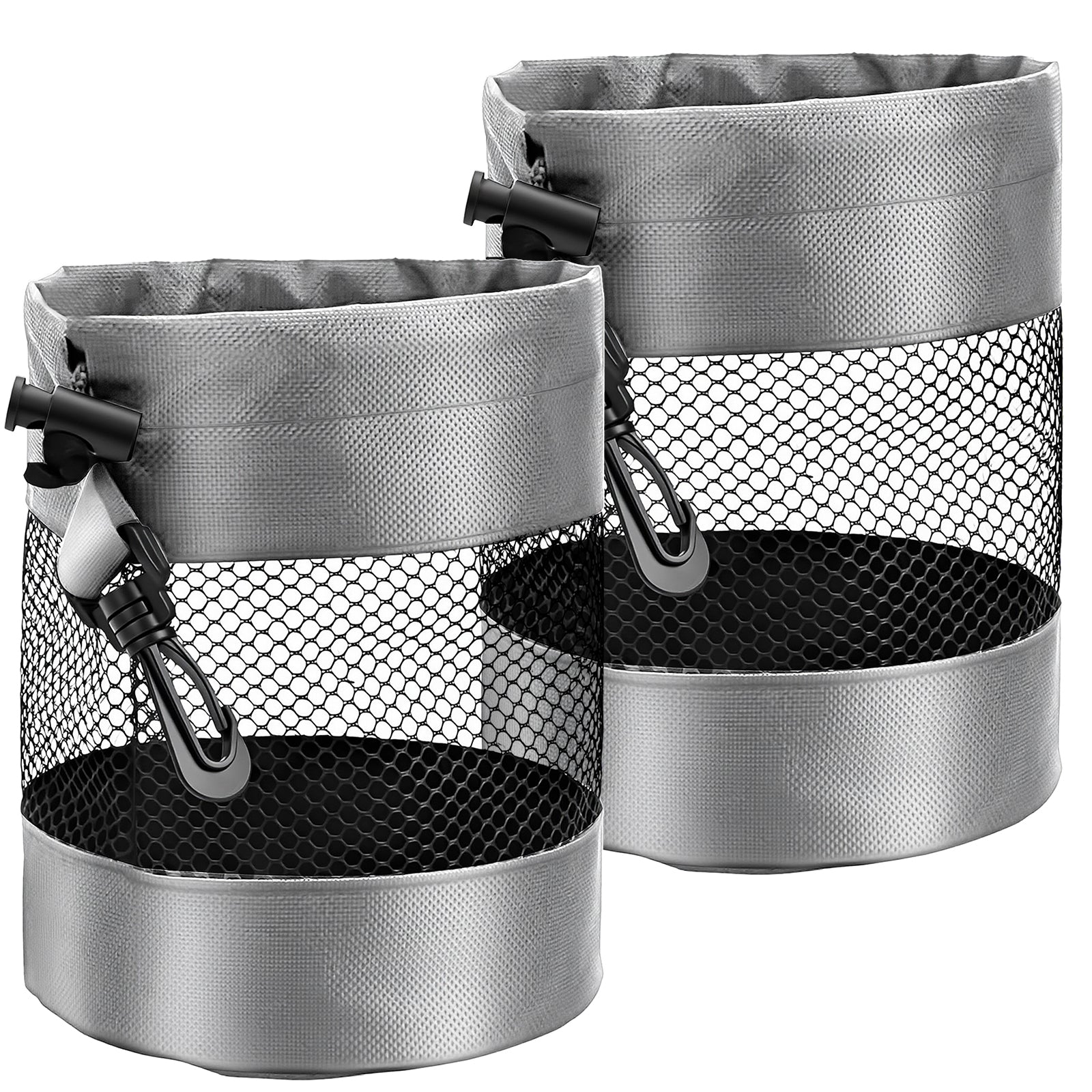 Classicseali 2 Pcs Golf Ball Pouch, Nylon Mesh Golf Ball Bag, 13 x 18cm/ 5.1 x 7.1 in Drawstring Golf Bag Organizer with Hook, Mesh Ball Bags for Billiards, Tennis, Kids Toys Storage, Grey
