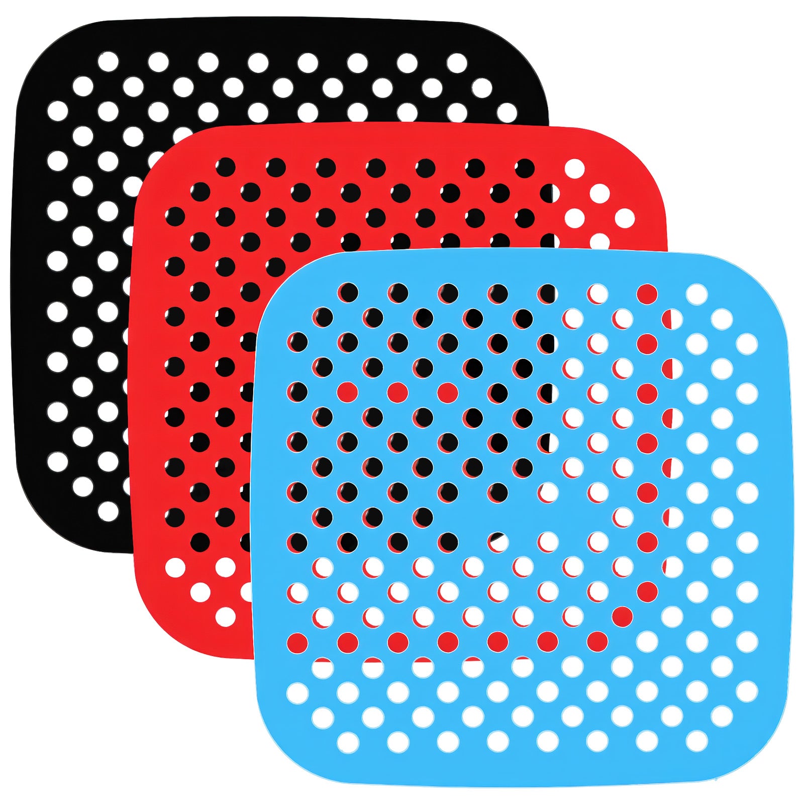 Classicseali 3pcs Reusable Air Fryer Liners, 7.5 Inch Square Non-Stick Airfryer Liners Silicone, Easy to Clean Air Fryer Accessories, 3Colors