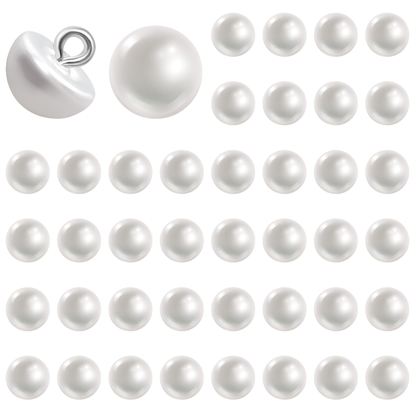 Classicseali 40pcs Pearl Buttons, Decorative Mother of Pearl Buttons, with Metal Round Hook, Semi-Circular 9mm Pearls Button for Sewing, for Wedding Dresses, Shirts, Jewelry, DIY Crafts, White