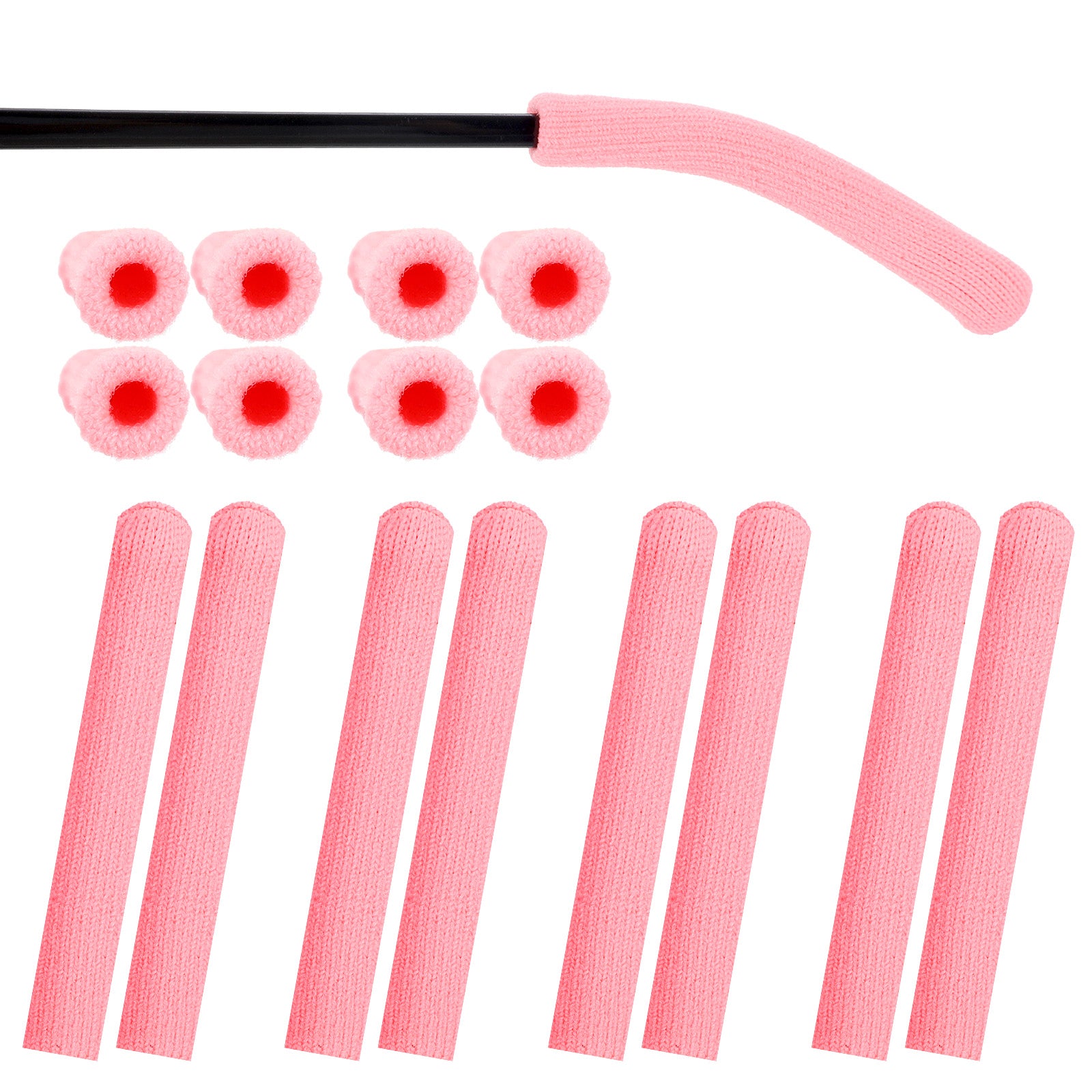 Classicseali 4Pairs Ear Pads for Glasses, Soft Knitted Cotton Ear Pads for Glasses, Non-Slip and Comfortable Ears Cushions for Glasseses, Reading Glasseses, Safety Work Goggles, Pink