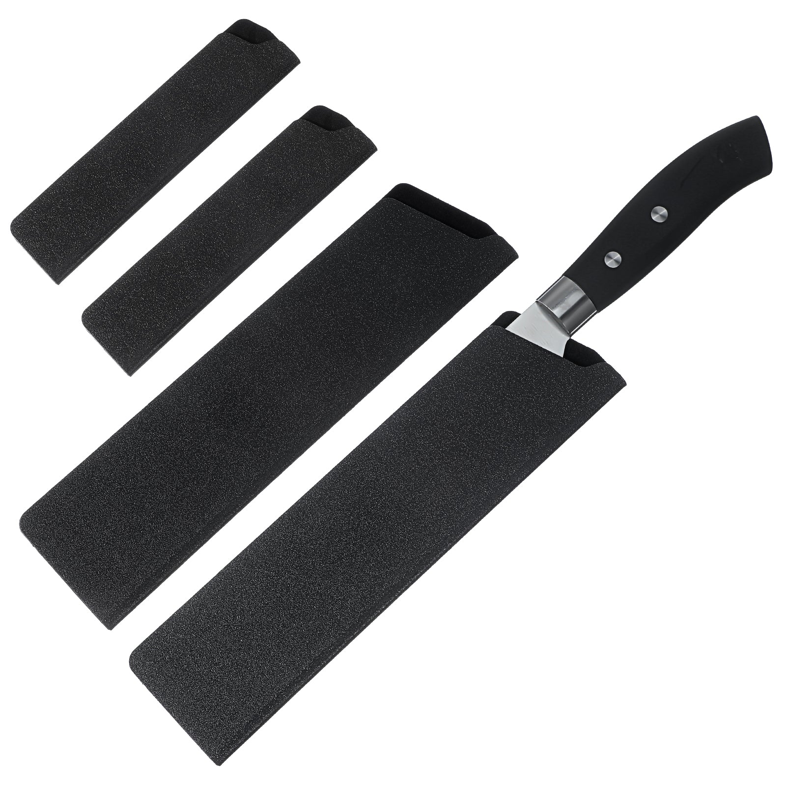 Classicseali 4pcs Knife Covers or Sleeves, 8.7" x 2.2" & 5.1" x 1.2" Knife Sheaths for Kitchen Knives, Cleaver, ABS Gentle Non-Scratch Felt Lining Chef Knives Sheath Kit for Home Kitchen, Black