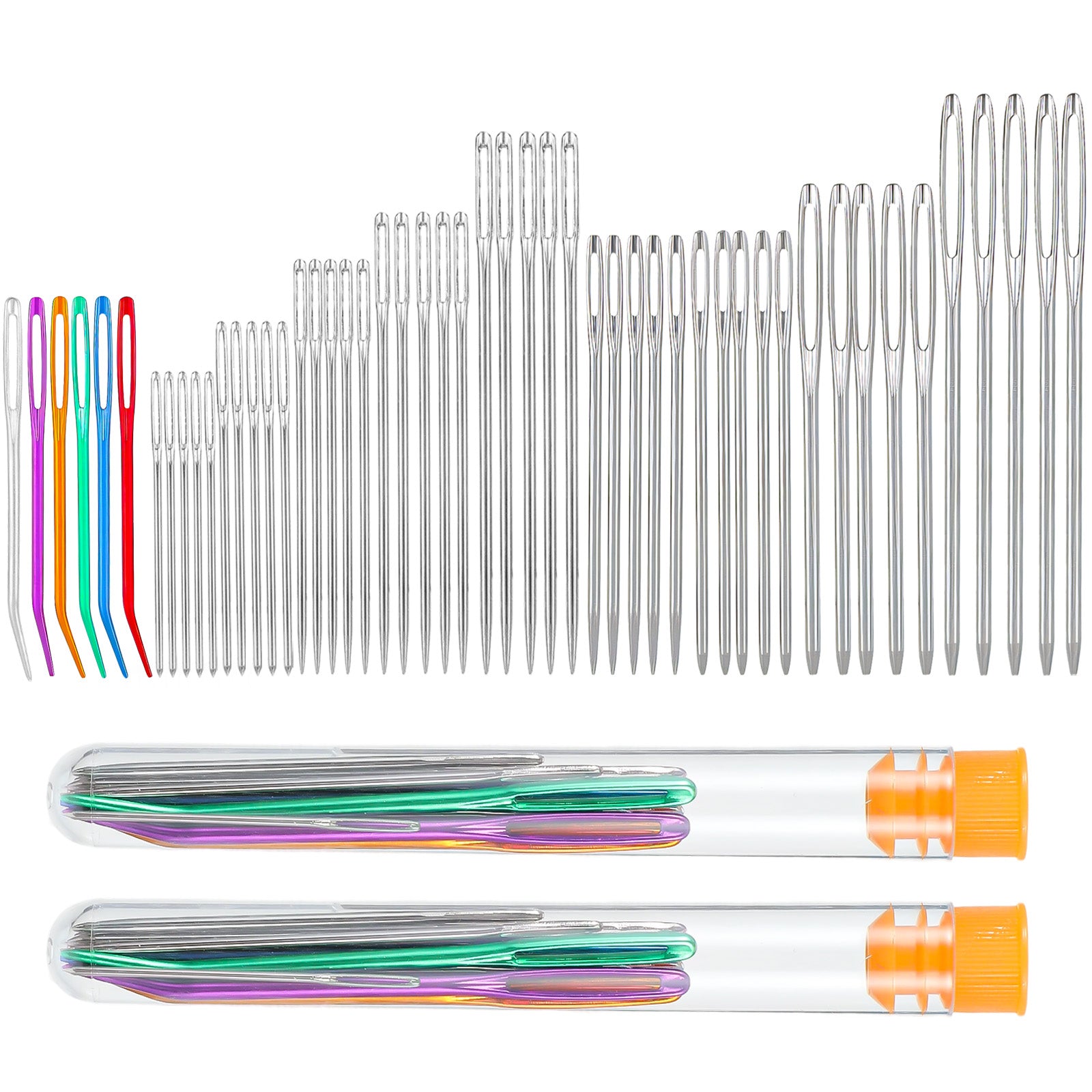 Packing list: Silver tail blunt needle large eye needle x 25 + Silver tail pointed large eye hand sewing needle x 20 + 6 x large curved needles + 2 x storage tubes