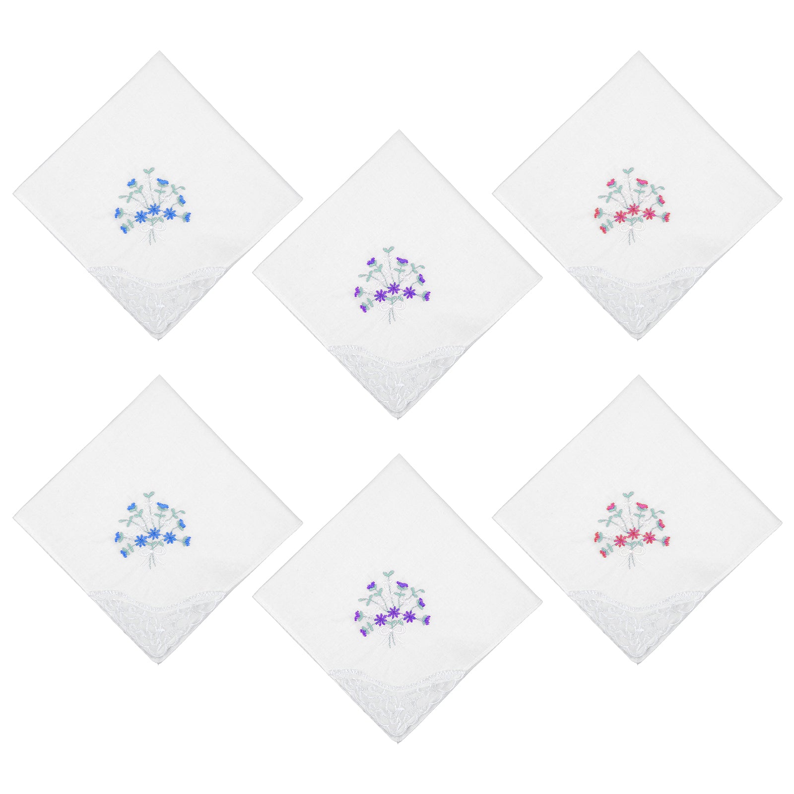 Classicseali 6pcs Handkerchiefs Women, Cotton Flower Ladies Handkerchiefs with Lace, Hankies Women Soft, 11 x 11Inch Ladies Hankies for Wedding Party