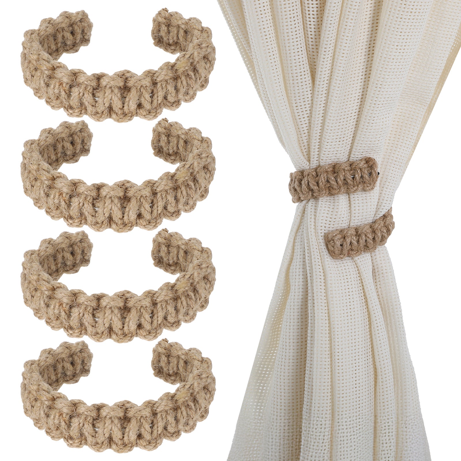Classicseali Farmhouse Curtain Tiebacks - Boho Curtain Tiebacks 4 Pack, Rustic Rope Curtain Ties for Home Office Bedroom Window, Elegant Curtain Holder for Home Decor