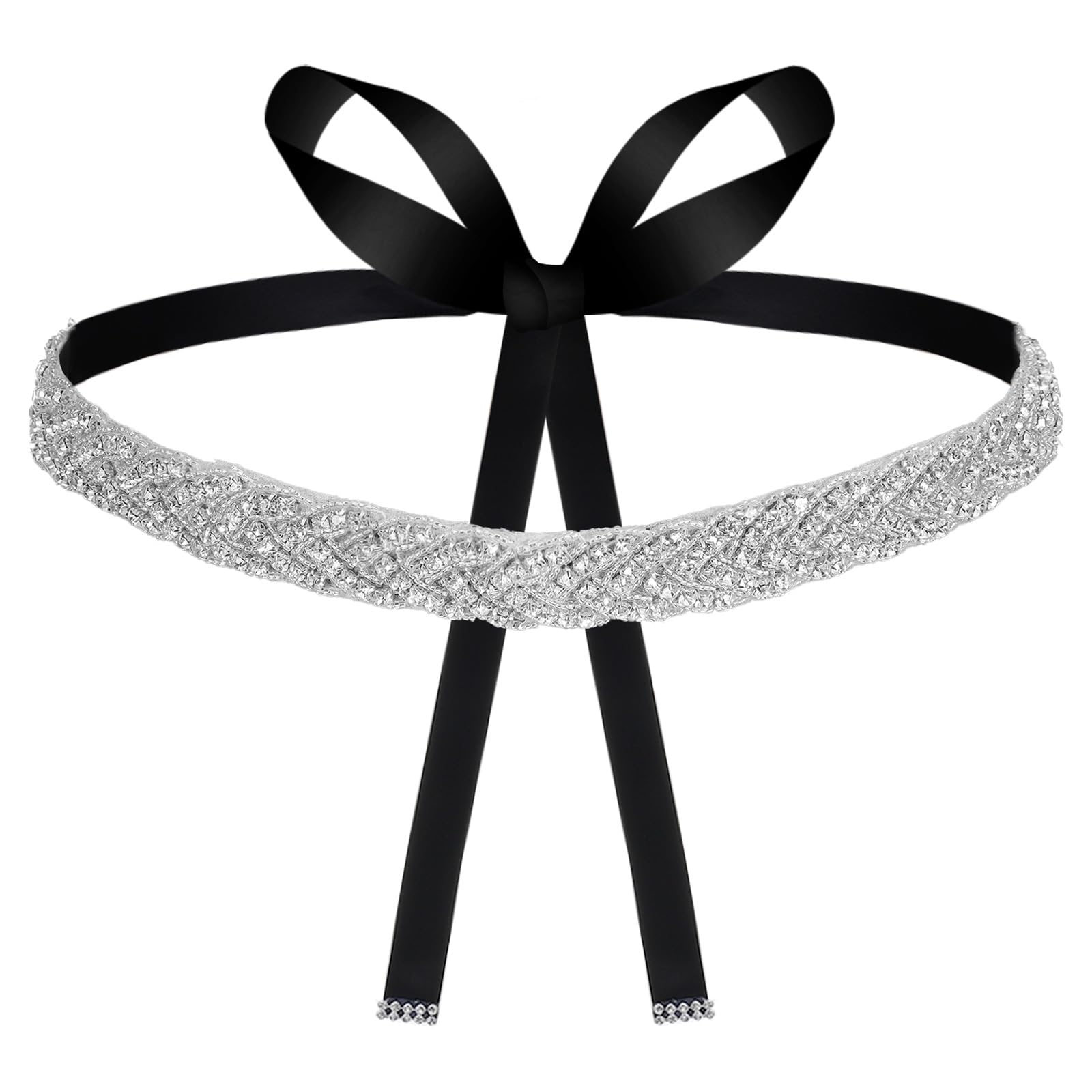 Classicseali Glitter Belt for Evening Dress, Rhinestone Belt for Evening Dresses, Glitter Belt for Bridesmaid Wedding Party Dresses, Adjustable Black Bridal Belt Women, Slim Fabric Belt