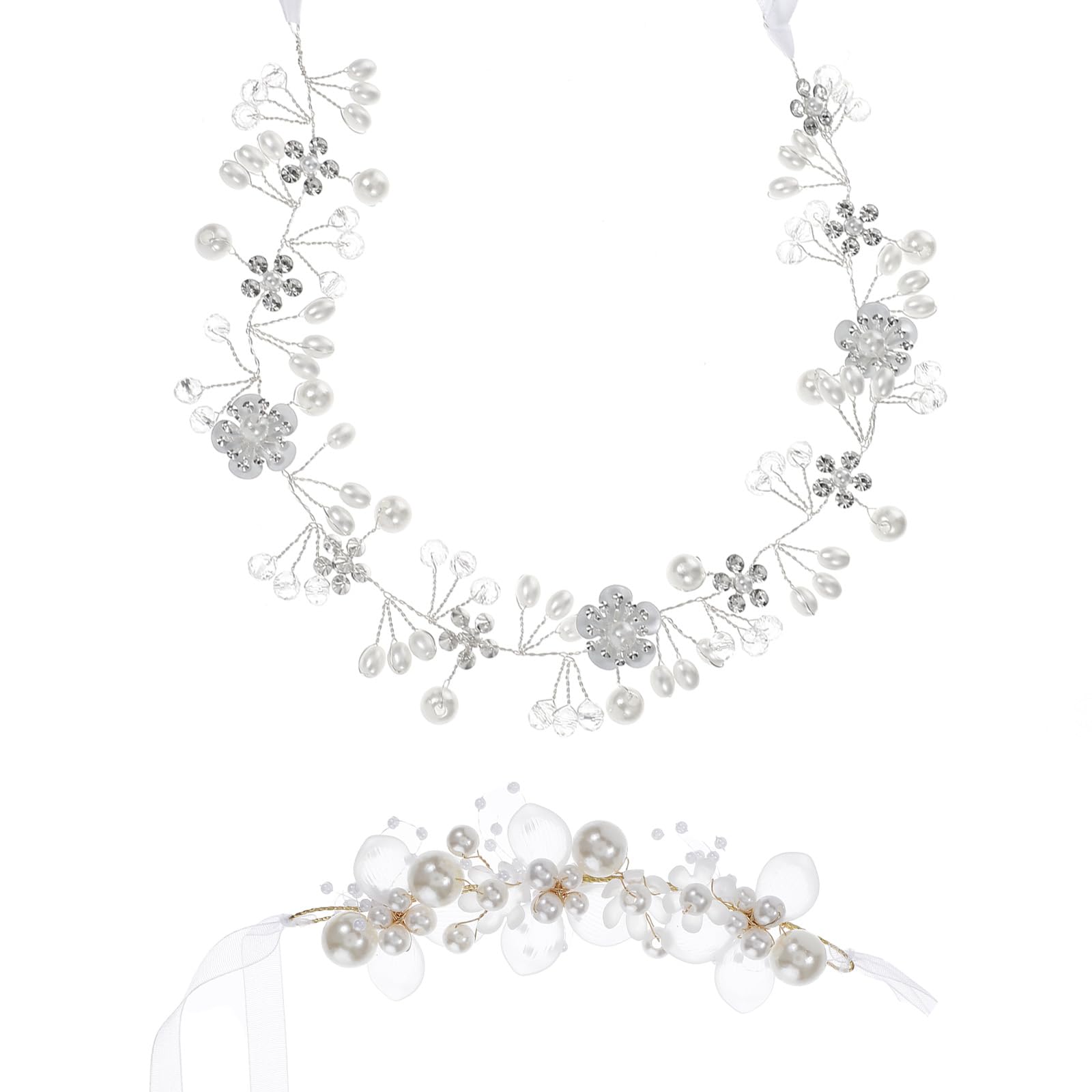 Classicseali Pack of 2 Hair Wreaths Communion Hair Accessories Communion Girls Pearl Headpiece Bridal Communion Hair Accessories for Girls Bridesmaid Flower Girl Headband Flower Girl
