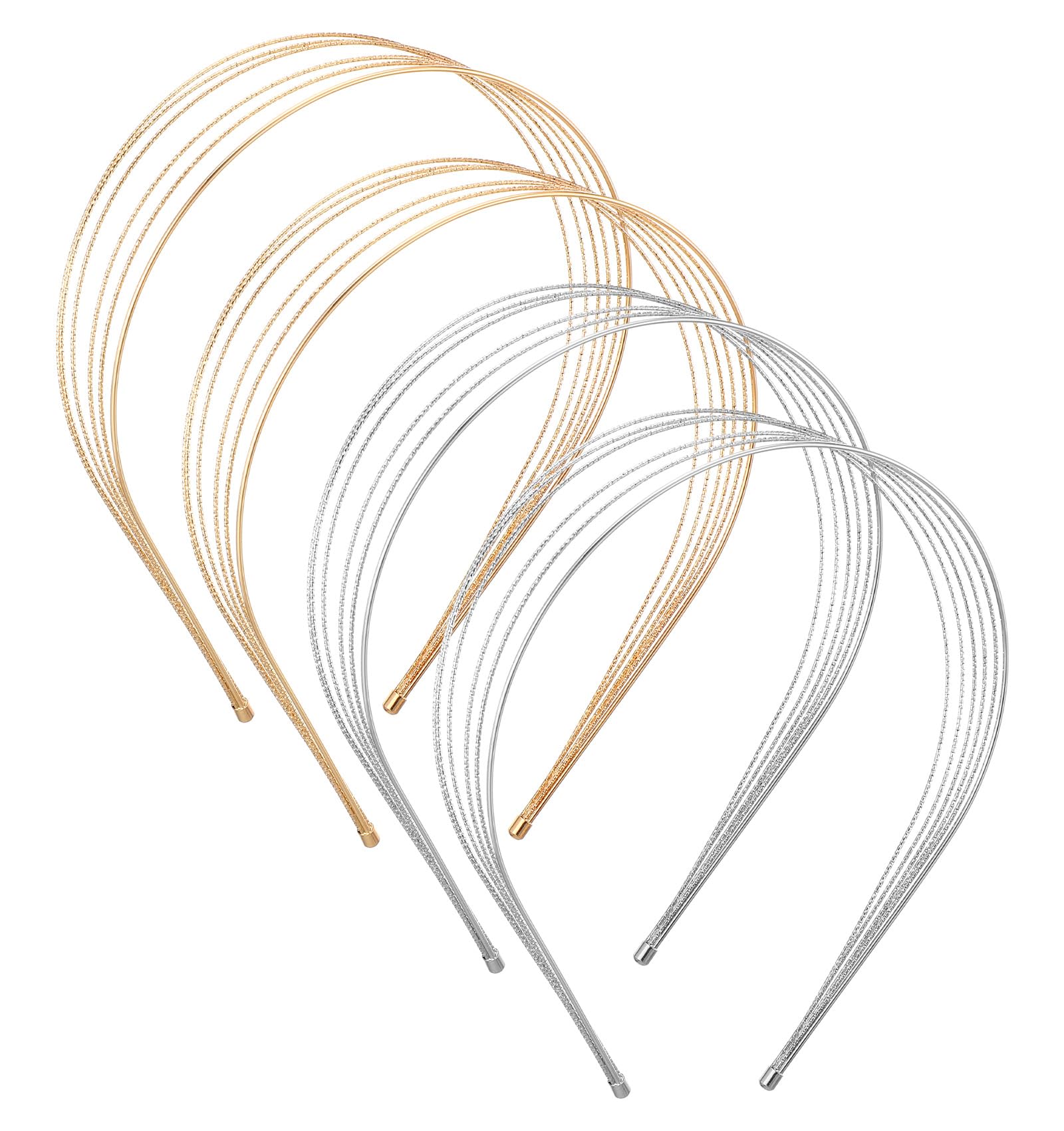 Gold Headb, 4 Pack Stylish Gold and Silver Multi Layers Metal Headbands for Women and Girls, Thin Layered Design for Chic Hairstyling, Suitable for Everyday and Formal Use