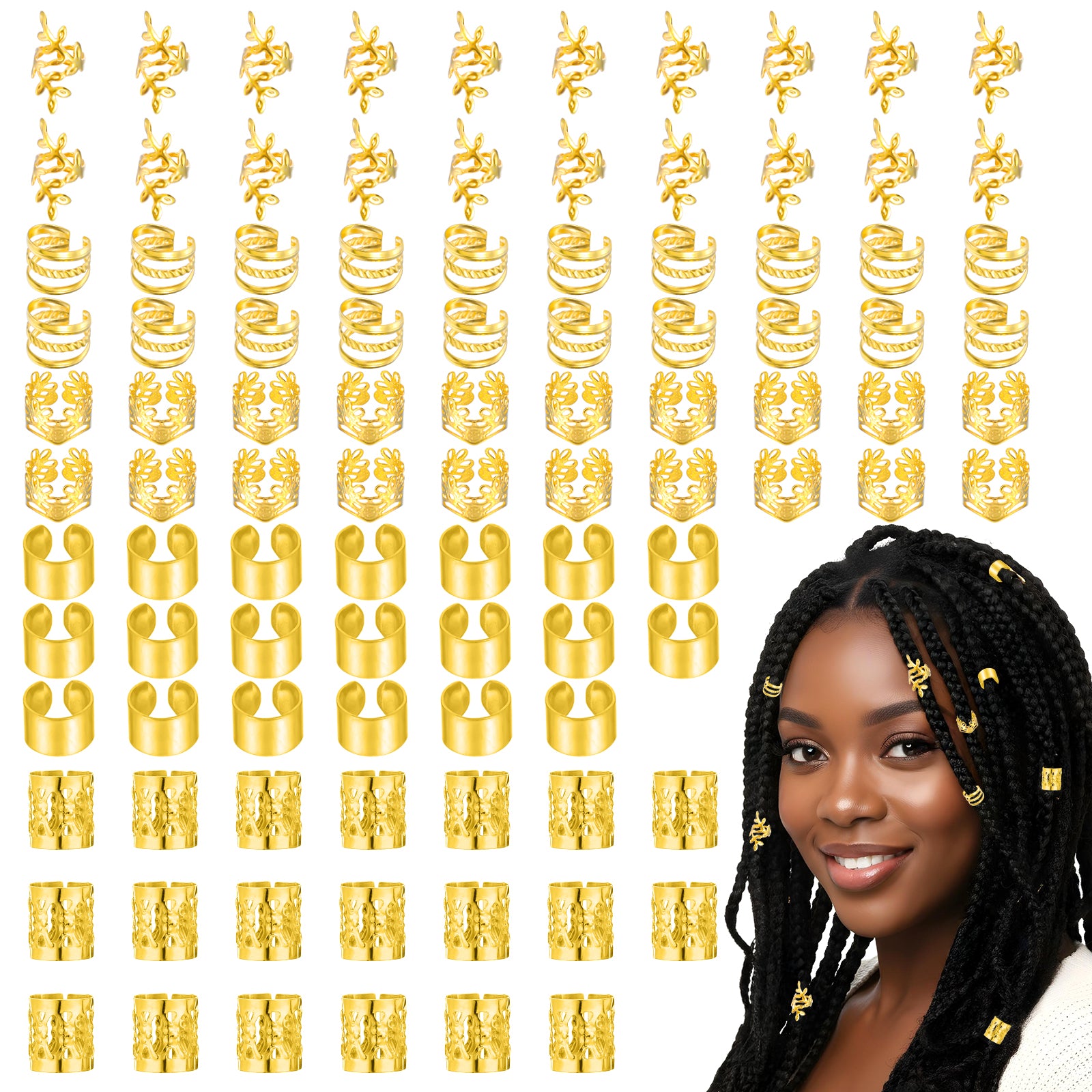 Guduling 100 Pcs Gold Hair Rings,Hair Cuffs Gold,Metal Locs Hairs Beads,Braid Rings Cuffs Clips, Boho Chic Hairs Decorations for Women and Girls