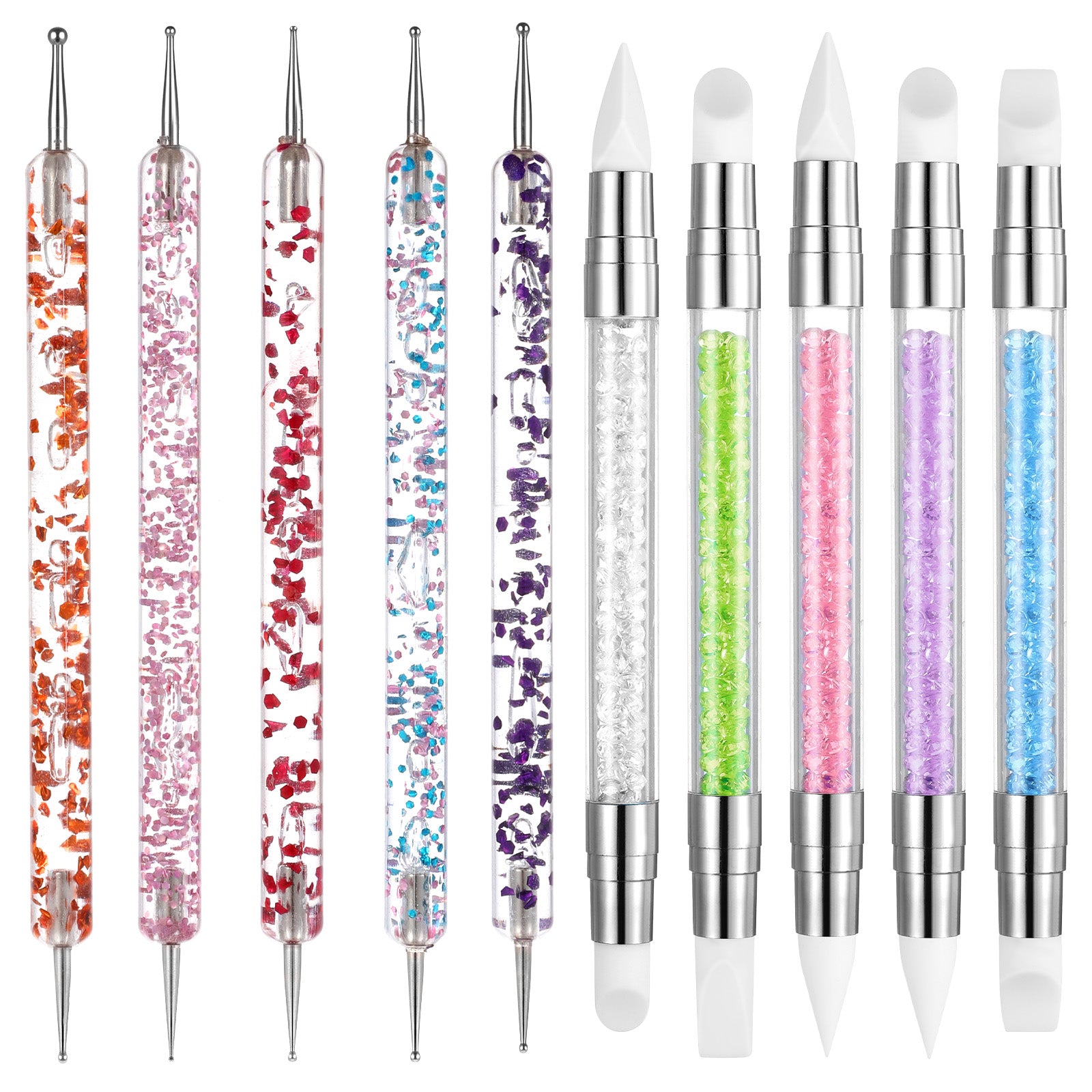 Guduling 10pcs Silicone Nail Tool, Dotting Tool for Nail Art, Double Ended Nail Art Brush Suitable for Design, Gold Foil, Engraving, Painting and 3d Effect Shaping Painting and Dotting