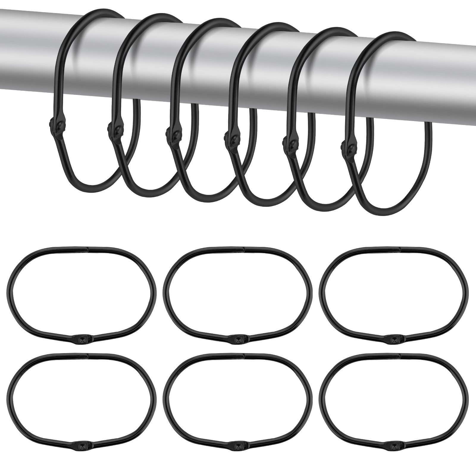 Guduling 12pcs Black Shower Curtain Hooks, Metal Black Curtain Rings, Metal Coated, Rust-Proof Curtains Pole Rings for Bathroom Shower Rods Curtains