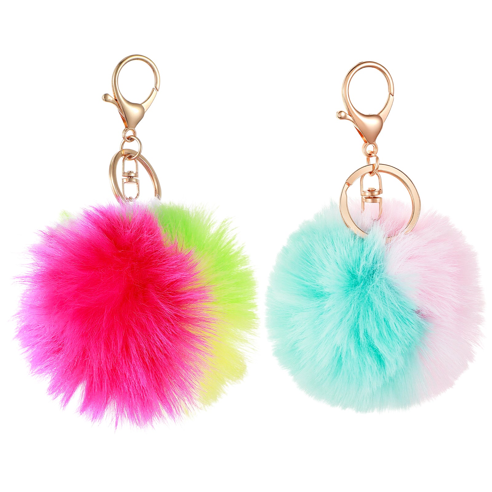 guduling 2pcs Pom Pom Keyring, Soft Fluffy Keyring, 3.15 Inch Plush Keyrings, Rainbow Fluffy Key Rings for Women Girl Handbag Backpack Hanging Decoration