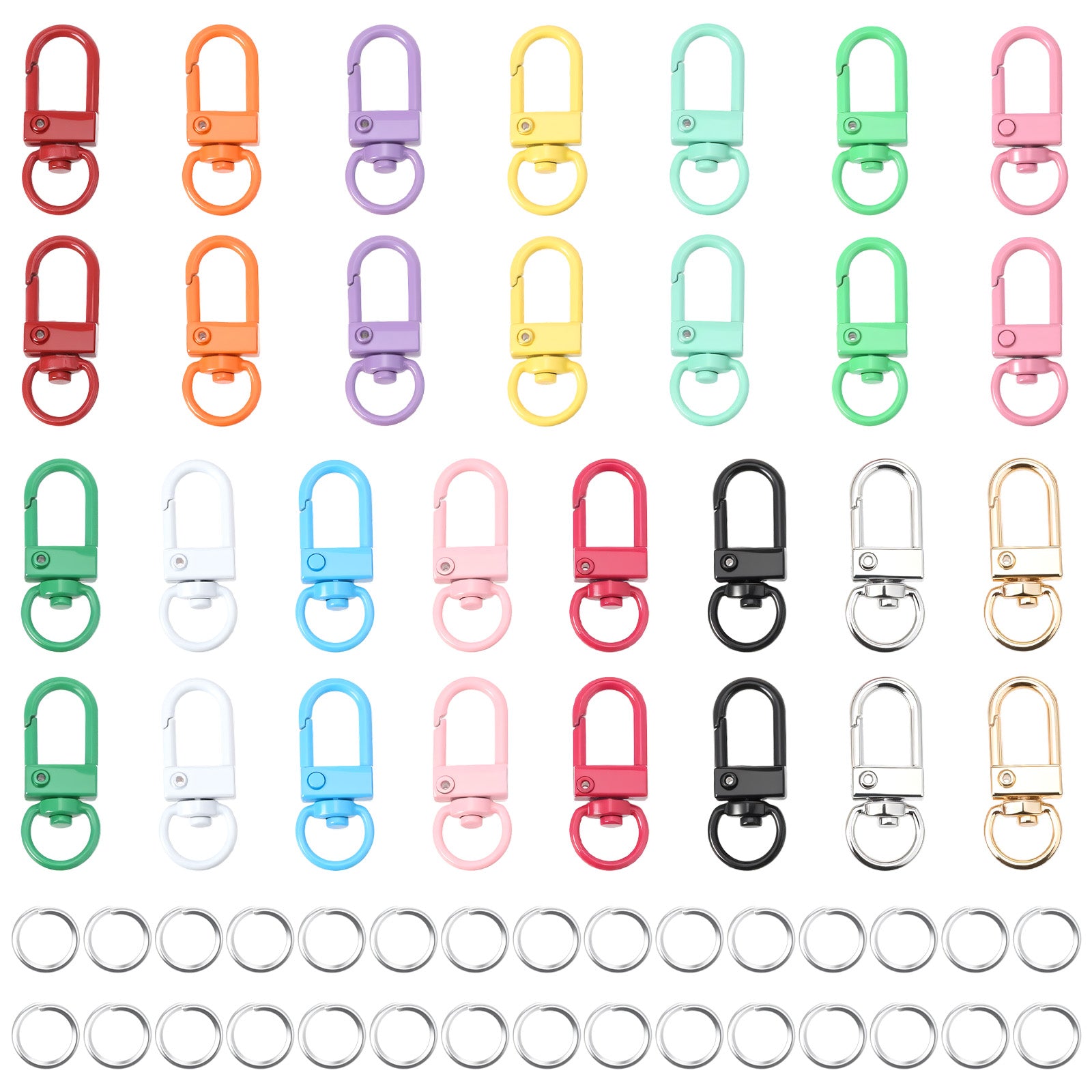 Guduling 60pcs Keyring Clips and 0.4 in Opening Rings, Small Metal Keychain Clip, Colorful Keyring Clips, Swivel Key Chains for Craft, Jewelry, Backpack Charm, DIY (1.24x0.44 in)