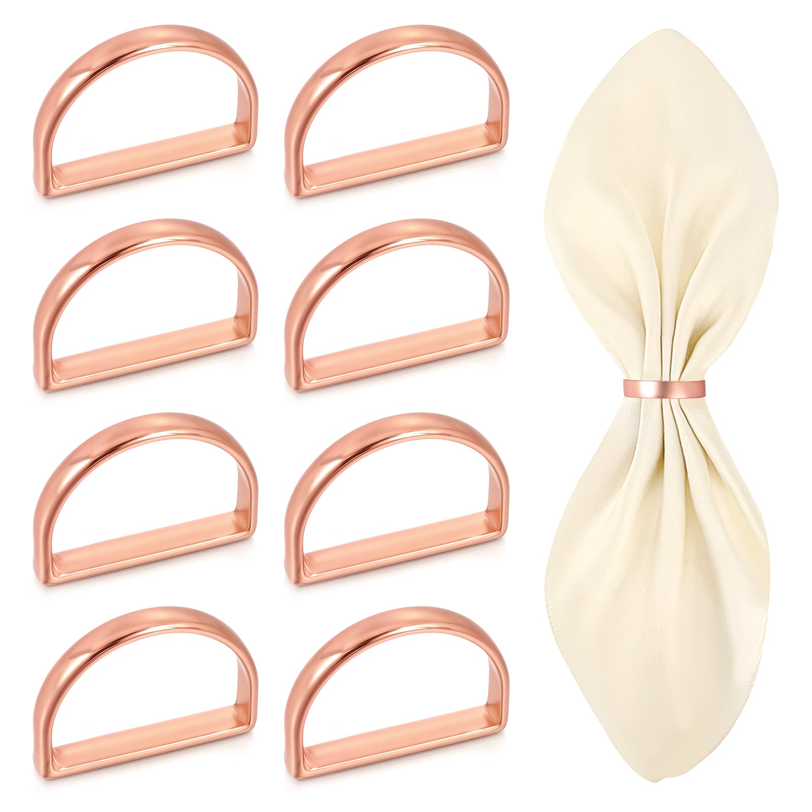 Guduling Napkin Rings Bulk - Napkin Rings Set of 8, Rose Gold Metal Napkins Ring for Elegant Table Settings, Weddings, Parties, and Family Dinners