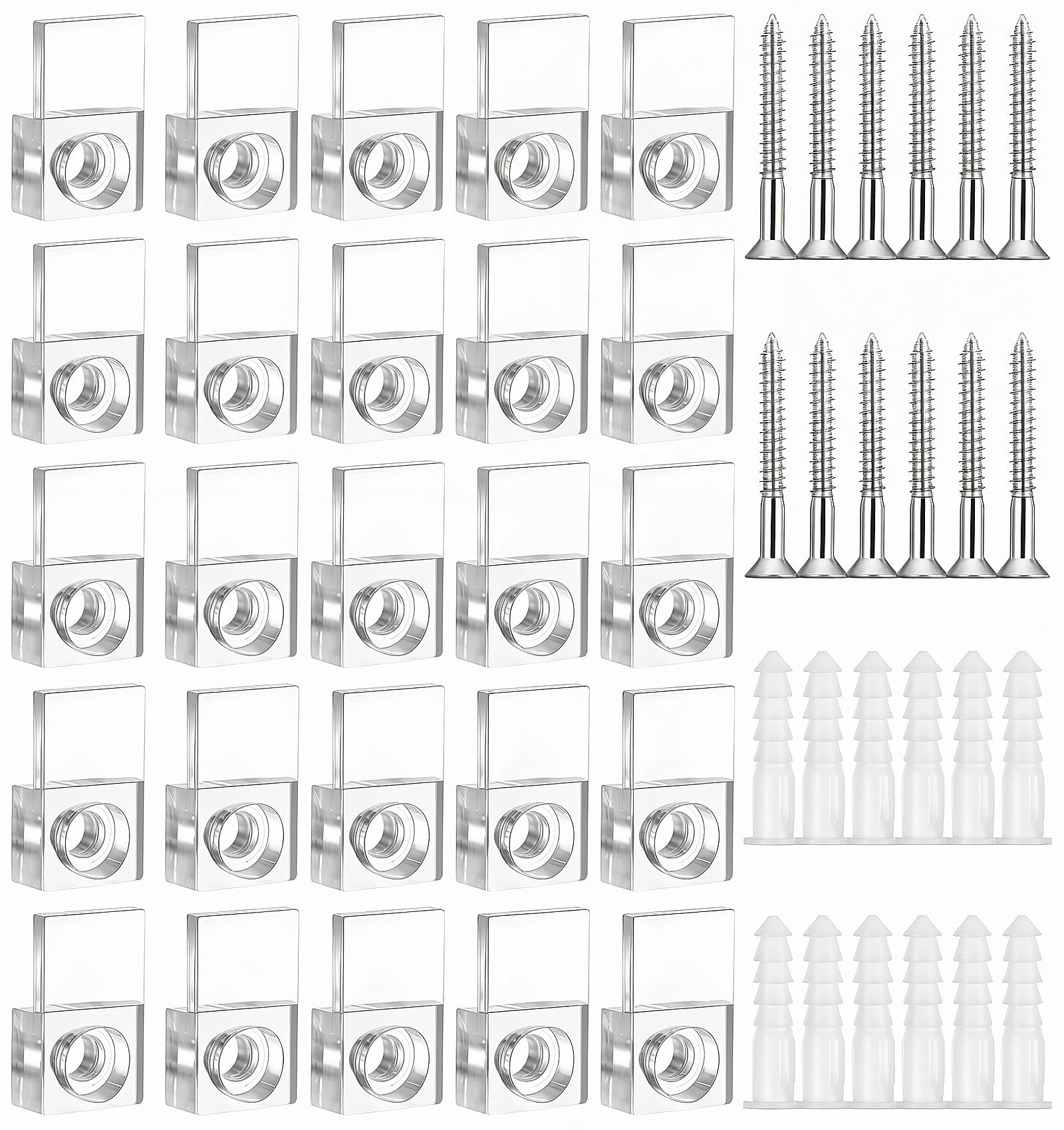 Mirror Holder, ValueBargain 40 Pack Mirror Mounting Clips Wall Installation Clear Plastic Clips for Easy Installation, Suitable for Heavy Duty Glass Hanging and Secure Fastening