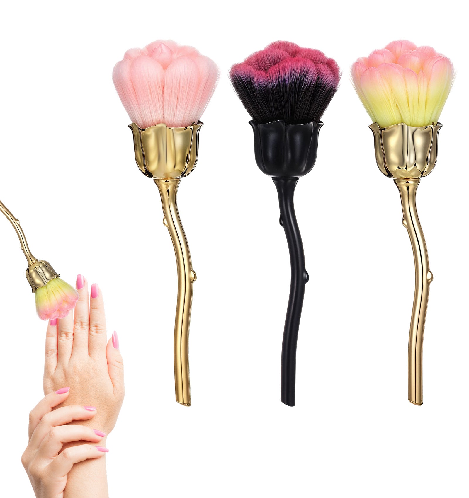Nail Dust Brush, 3 Pcs Ultra Soft Nylon Nail Dusting Brush for Nails Art, Rose Shape Dust Cleaner Tools, Perfect for Makeup & Dusting Nails