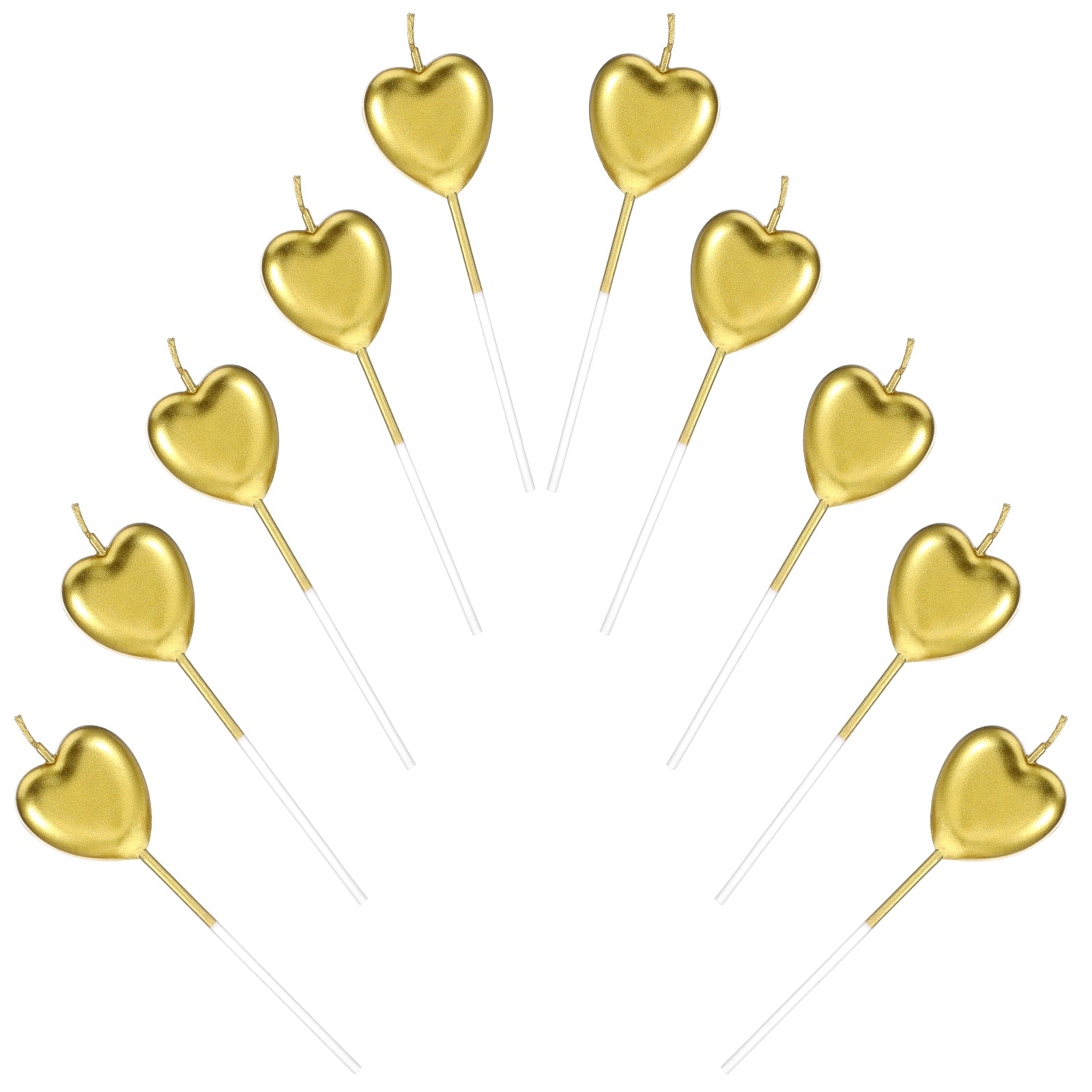 Oruola 10pcs Heart Shaped Gold Birthday Candles,Heart Candle for Birthday Cakes,Metallic Cake Toppers for Birthday Wedding Party Decorations,Sparkling Gold Birthday Candles for Cakes,Gold