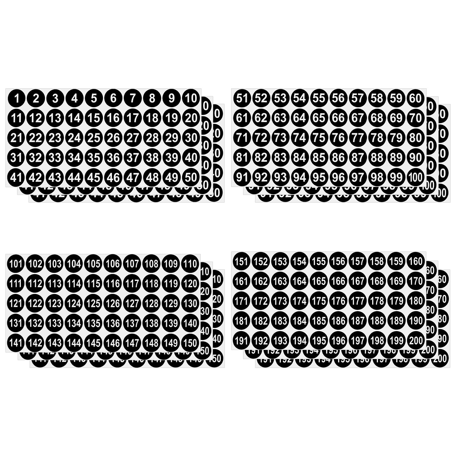 Oruola 12pcs Number Stickers,1 to 200 Consecutive Number Stickers(3 Sets),Self-Adhesive Number Stickers for Classroom,Indoor Outdoor,Storage,Organizing,Boxes,Bins,Toolbox,Locker (Diameter 1 in)