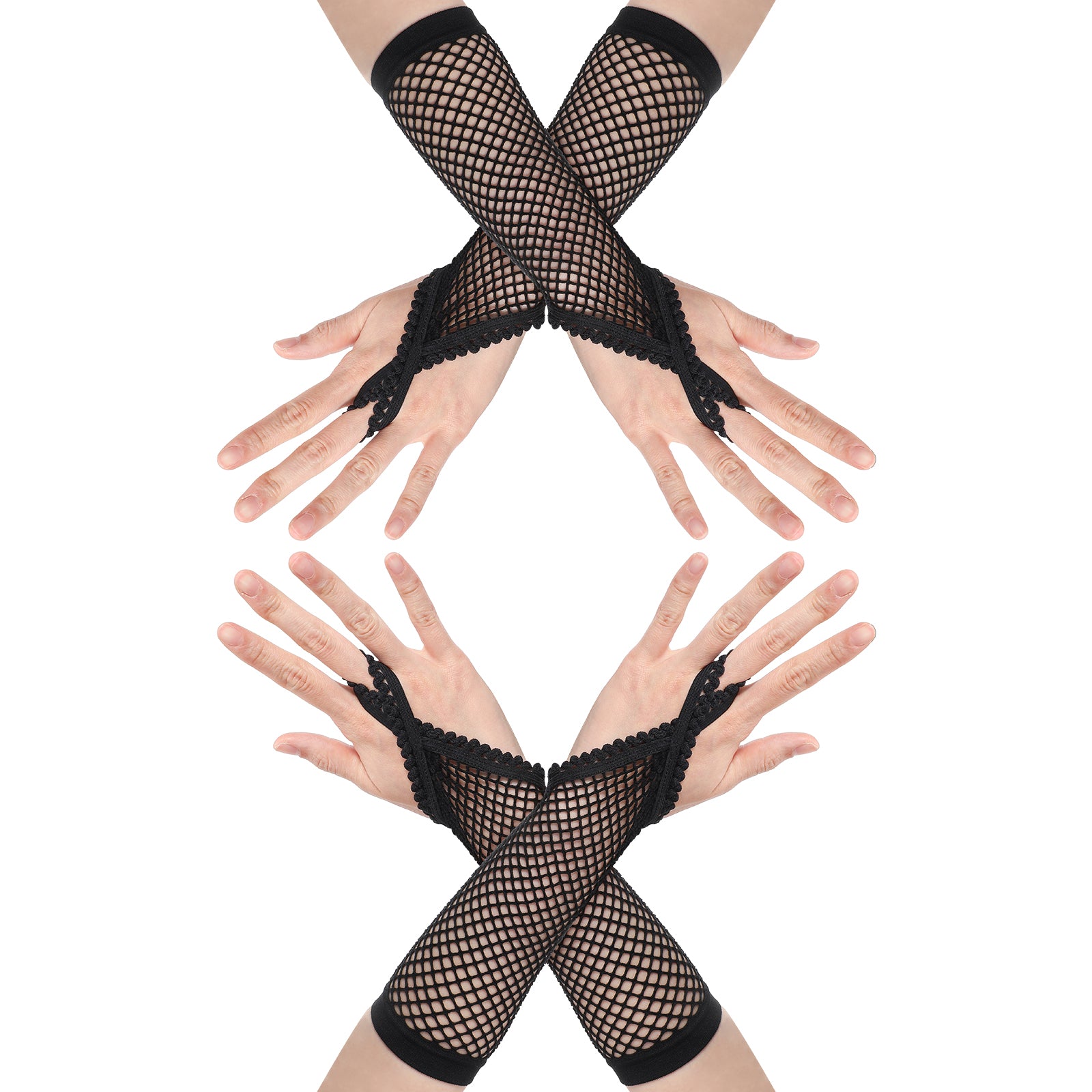 oruola 2 Pairs Fishnet Gloves,Mesh Gloves,Black Lace Sleeves,Resilient Fishnet Glove Fingerless For Women,Goth Punk 80s Party Cosplay Costume Accessories for Women & Girls