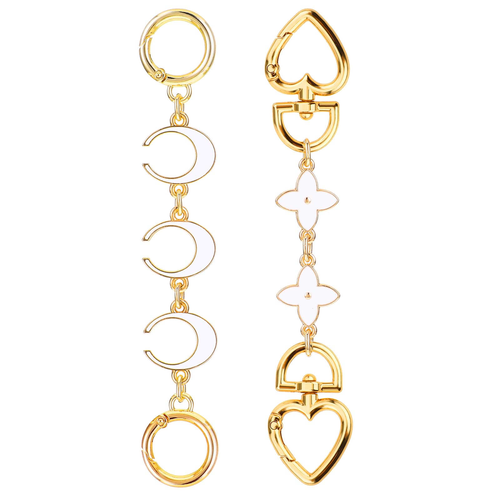 Packing list: 1pcs four leaf clover purse extension chain + 1pcs moon shaped hand strap extension chain