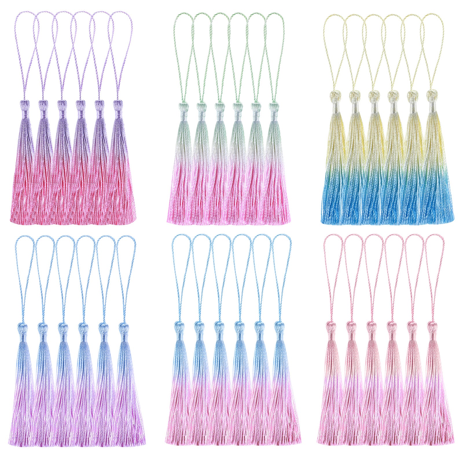 Oruola 36 Pcs Mini Tassels Bookmark,Colorful Tassels for Crafts Bookmark Tassels,Handmade Crafts Tassels13cm/5in Silky Handmade Soft Tassels for Jewelry Making DIY Projects Bookmarks