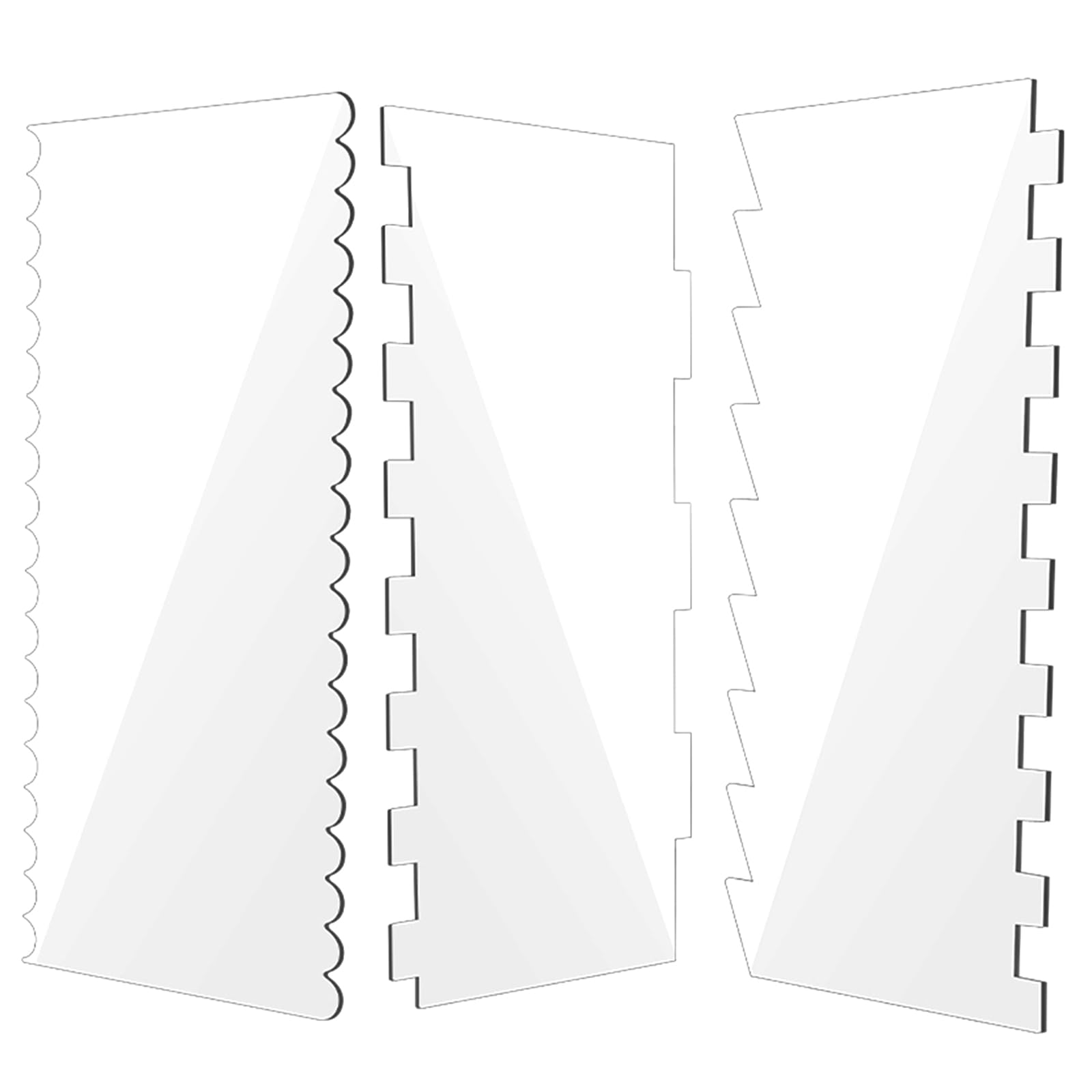 Oruola 3pcs Cake Scraper,9.4In Cake Smoother for Icing,Large Clear Acrylic Cake Scraper Tool,Double Sided Patterned Edge Cake Scraper Smoother,Cake Decorating Supplies for Beginners and Pros