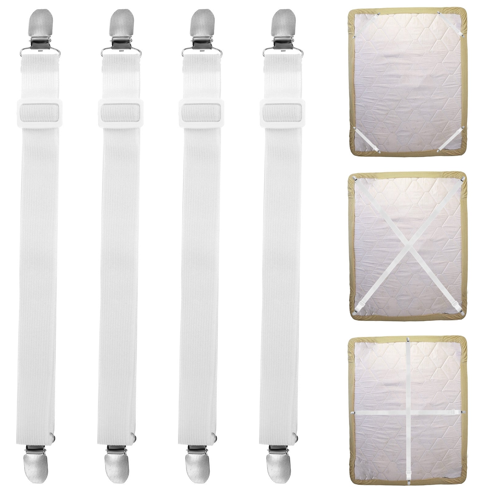 oruola 4 pcs Bed Sheet Clips, 4PCS Adjustable Bed Sheet Straps, Elastic Sheet Straps Suspenders Clips for Bedding, Fitted Bed Sheet Grippers to Keep Your Sheets in Place