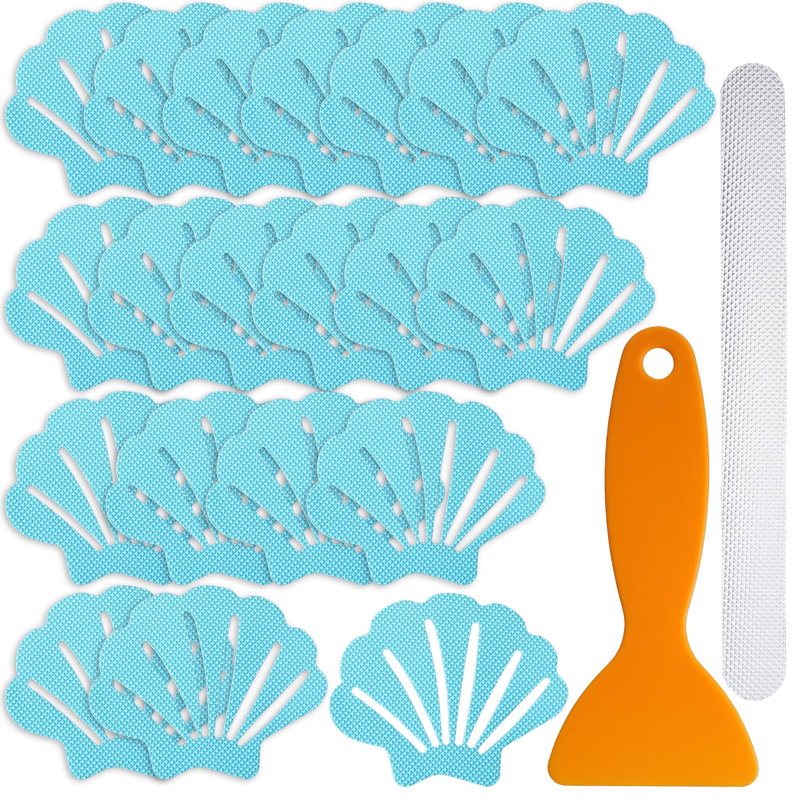 oruola 40pcs Shower Floor Non Slip Stickers,Non Slip Bathtub Stickers,Shell Shaped Anti Slip Bathtub Stickers,Adhesive Bathtub Stickers with Premium Scraper for Bath Tub Shower(2 Style)