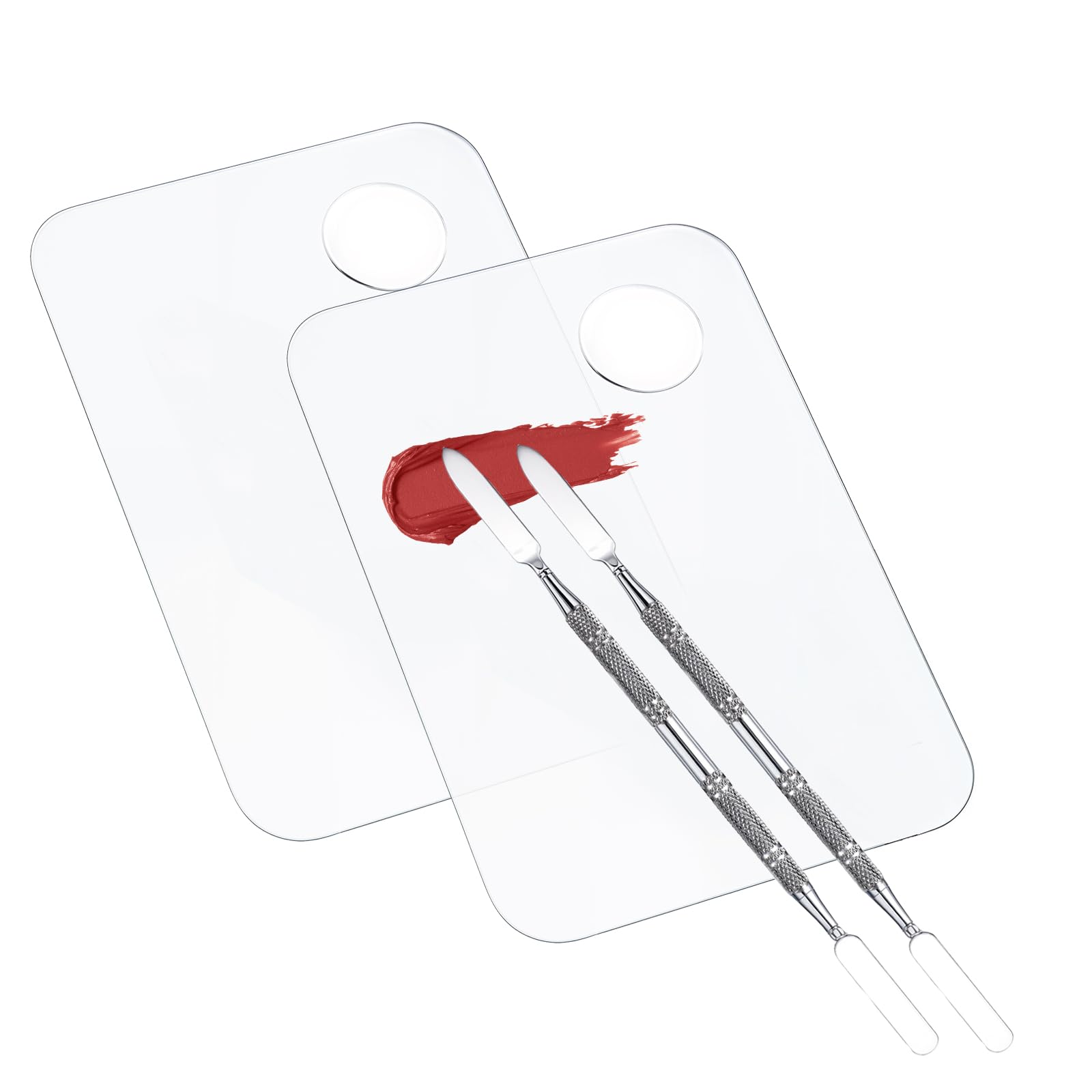 Oruola 4pcs Makeup Mixing Palette,2 Acrylic Makeup Palette Nail Art Palette & 2 Stainless Steel Makeup Spatula for Makeup Color Cream Liquid Foundation Nail Gel Mixing Home Salon with Cosmetic Spatula