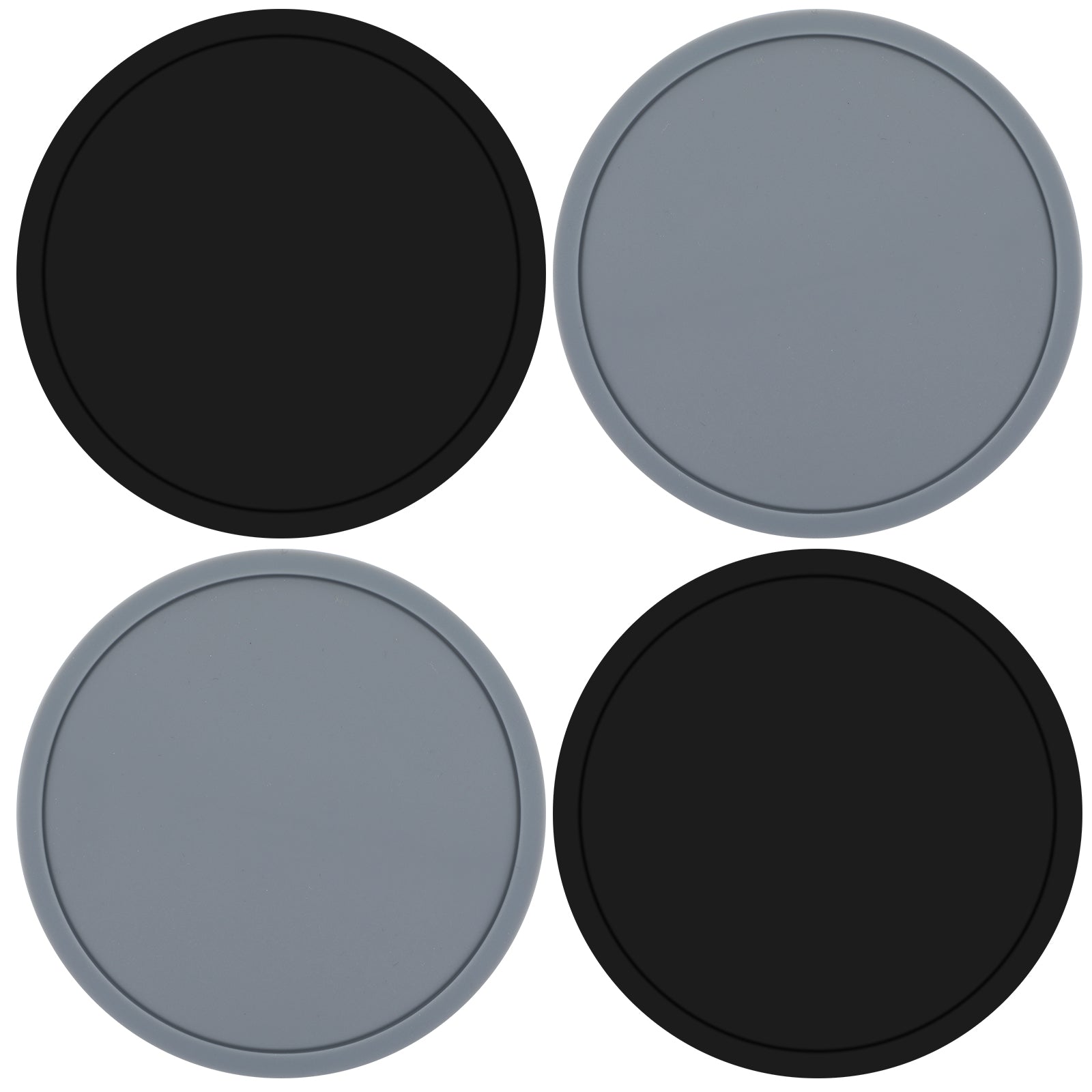 Oruola 4pcs Silicone Coasters,Round Silicone Rubber Mug Coaster,Coasters Set of 4,Non-Slip Black Coasters for Drinks,Coffee,Beer,Wine Glass,Home and Bar(Grey & Black)