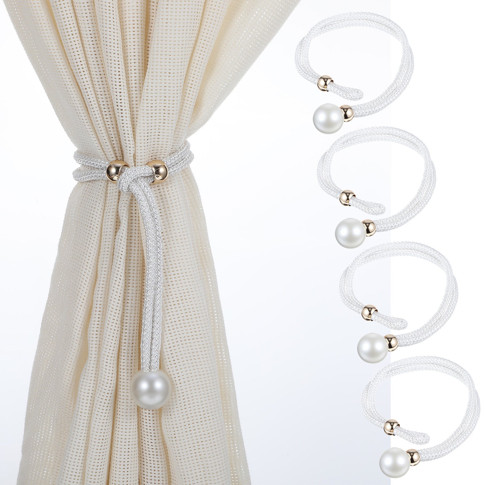 oruola 4pcs Tie Backs for Curtains, Elegant White Pearl Curtain Tie Backs, Adjustable Curtain Ties for Home, Office, Hotel Decor, Window Drapery