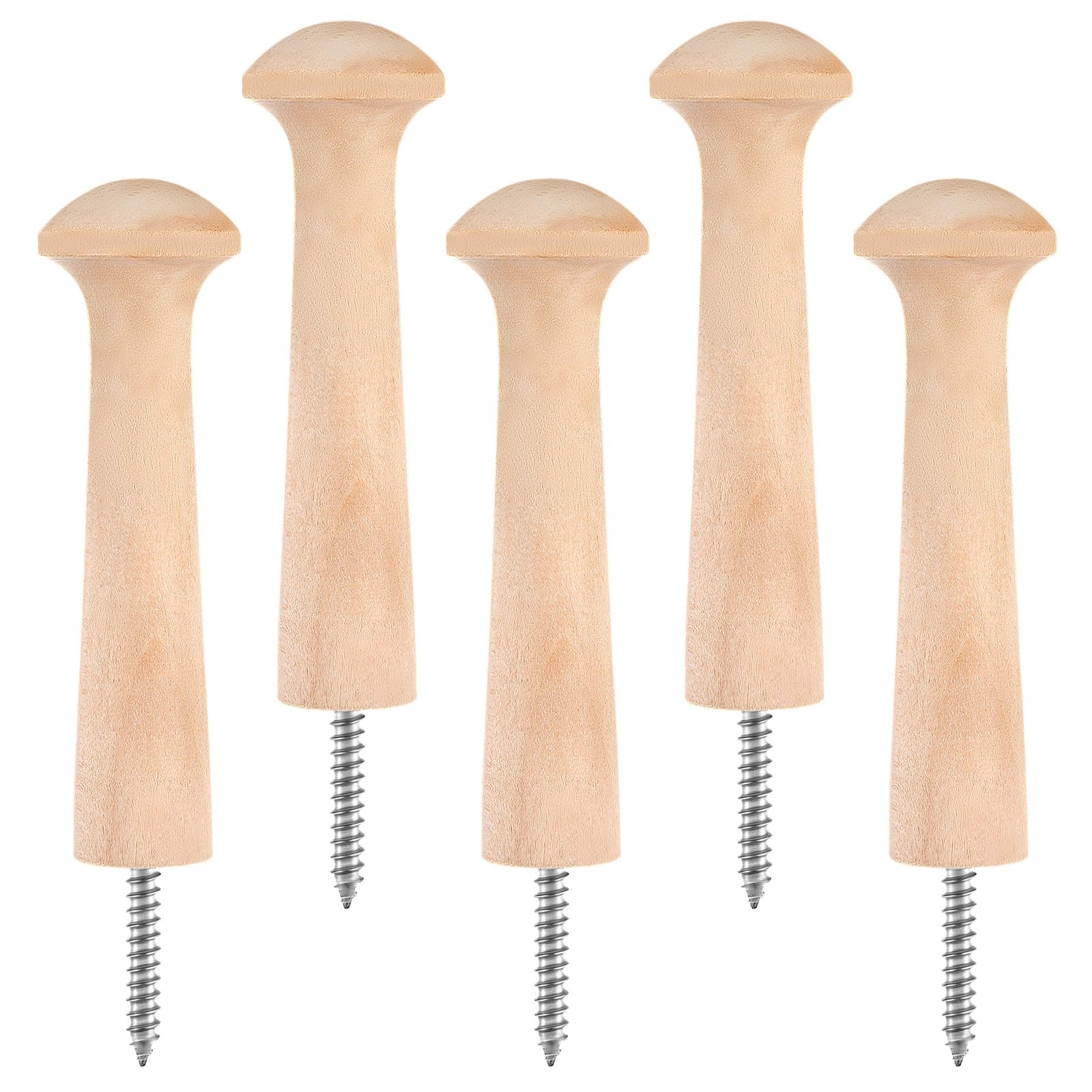 oruola 5pcs Wooden Shaker Peg Hooks,3.68 Inch Screw On Wood Hook Shaker Pegs,Wooden Shaker Peg with Screws,Unfinished Wood Shaker Pegs for Hanging Clothes Hats Keys Bags Towels