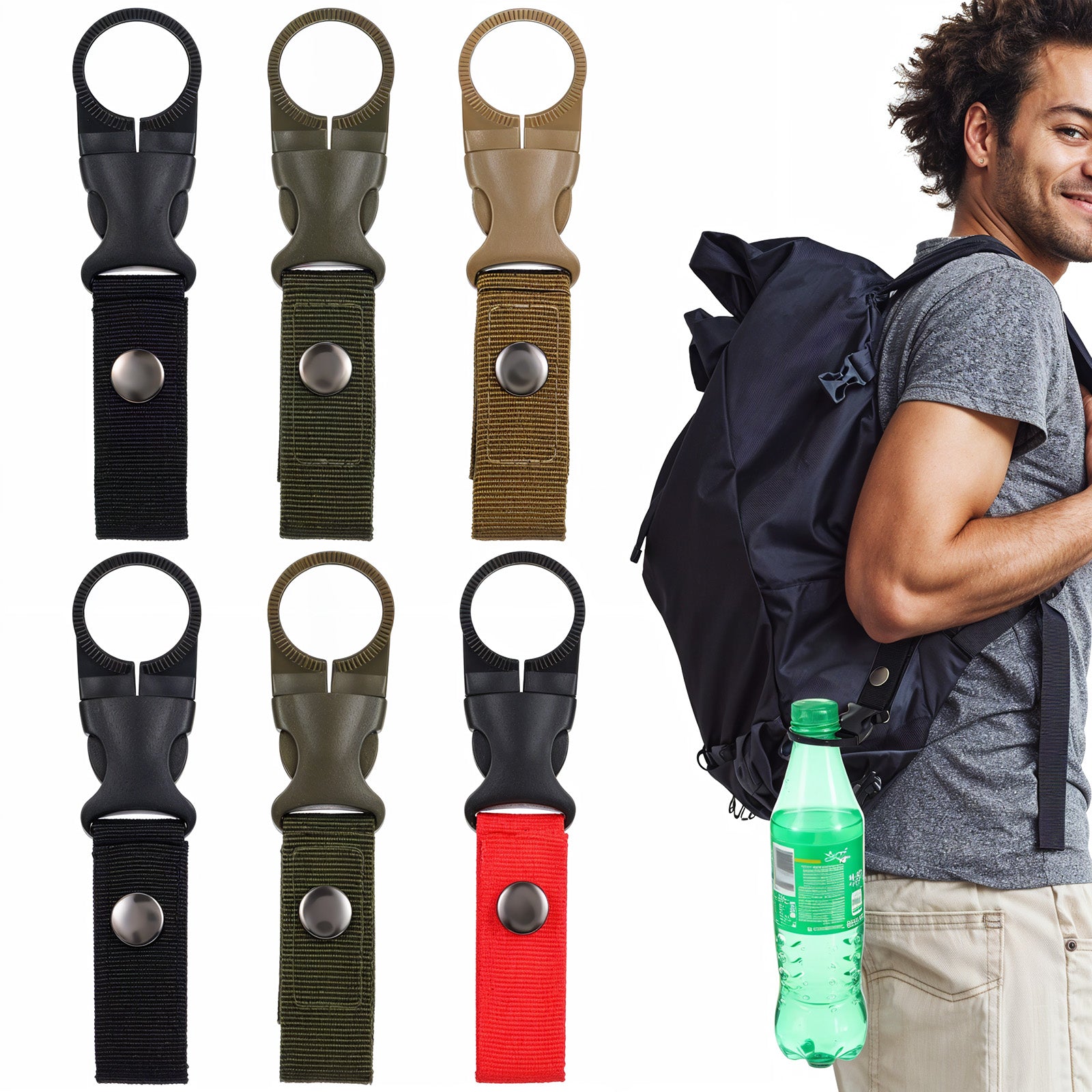 oruola 6pcs Hanging Bottle Buckle Clip,Nylon Water Bottle Hanging Strap,Portable Water Bottle Buckles Clip for Outdoor Camping Hiking Traveling Tactical(Black,Army Green,Khaki,Red)