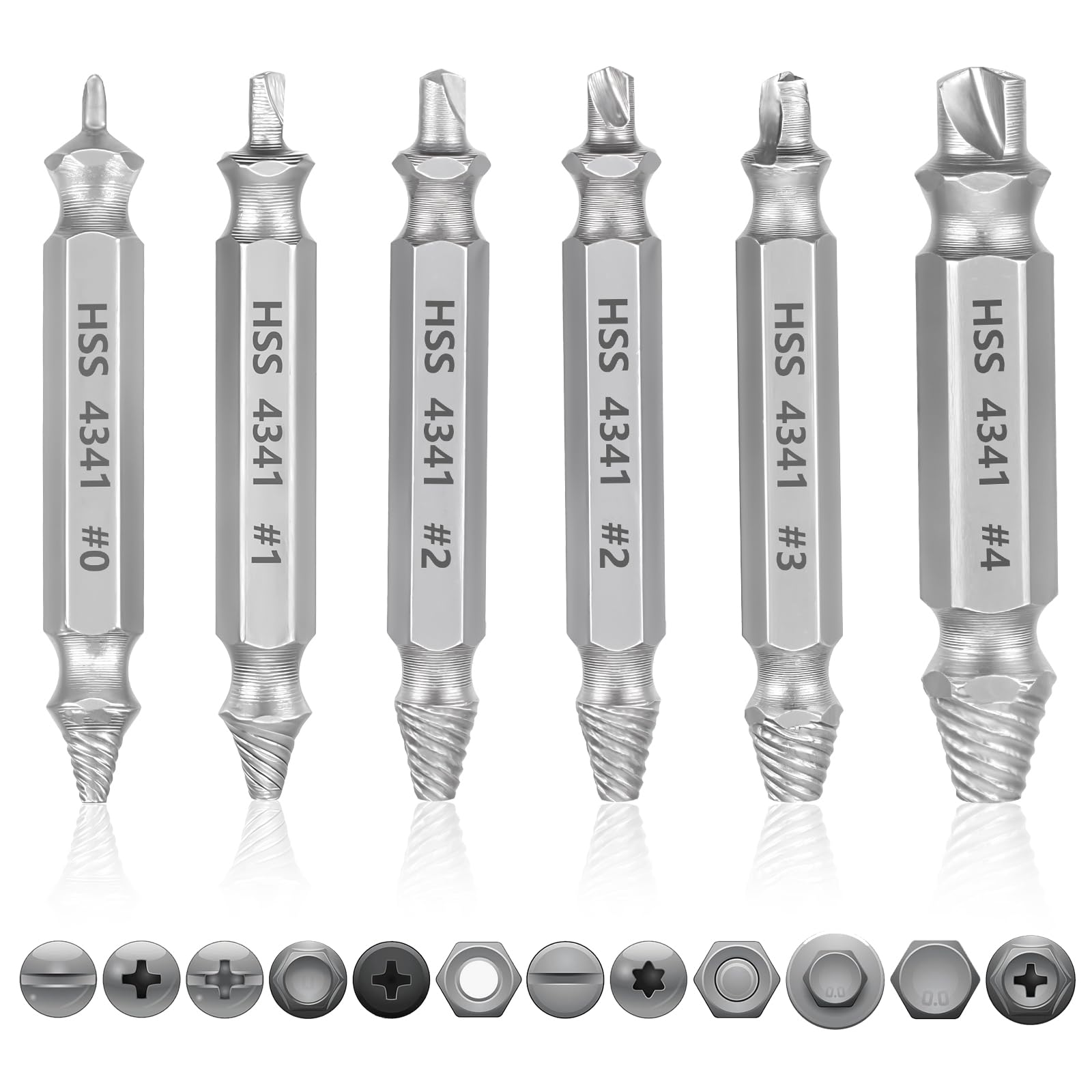 Oruola 6pcs Stripped Screw Removal Tool,Damaged Screw Extractor Set,Remover for Stripped Head Screws Nuts & Bolts, Drill Bit Tools for Easy Removal of Rusty & Broken Hardware, Superb Gift for Men