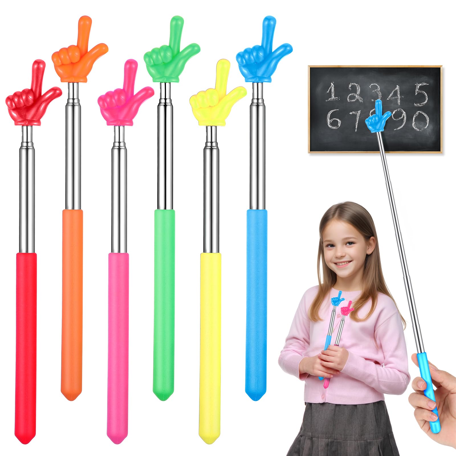 oruola 6pcs Teacher Pointer Sticks Finger,Finger Pointer Stick,Pointer Stick for Classroom,Extends to 22.64" Retractable Teacher Pointer Fingers for Classroom Supplies(Multicolor)