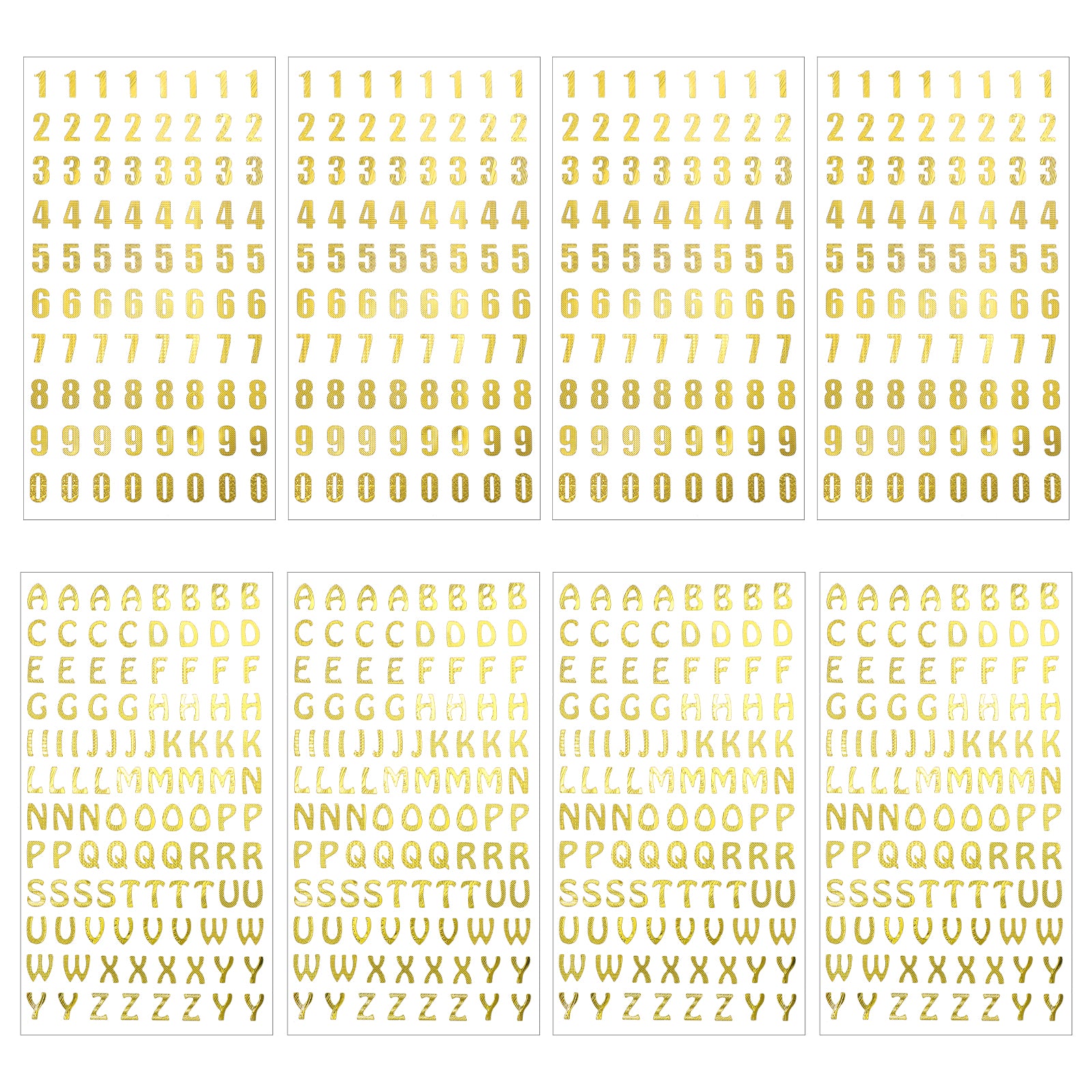 Oruola 8 Sheets Gold Letter Stickers,Gold Alphabet Number Stickers,Self-Adhesive Glitter Letter Number Stickers for DIY Craft Art Scrapbooks Greeting Cards Bulletin Boards Classroom Home Decor (Gold)
