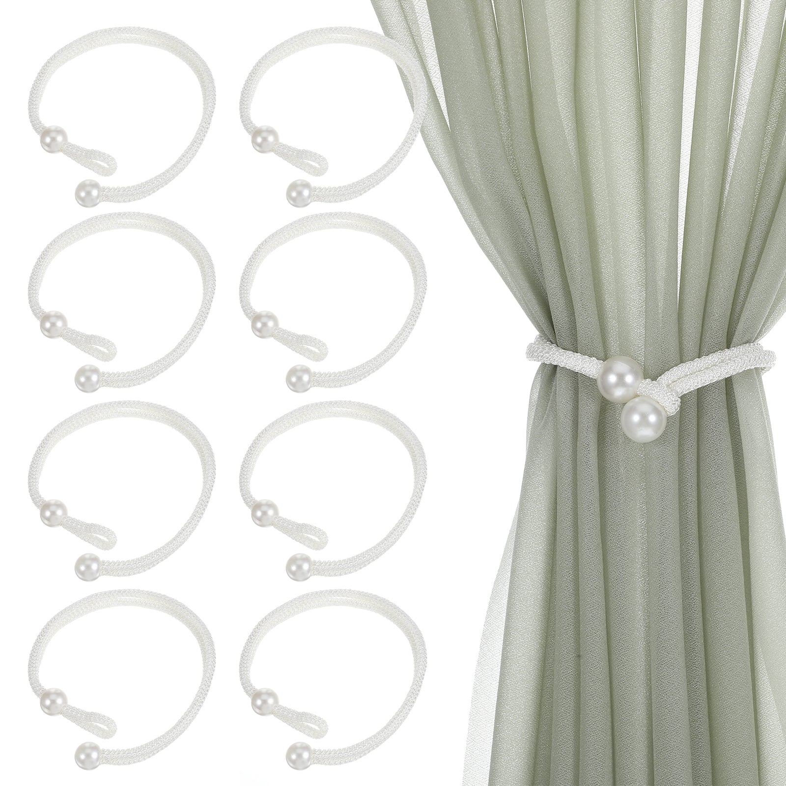 oruola 8pcs Tie Backs for Curtains,Adjustable White Tie Backs with Pearl Curtain Rope Buckle Cord Holders,Simple Style Decorative Curtain Tiebacks for Home Hotel Office Window Drapery