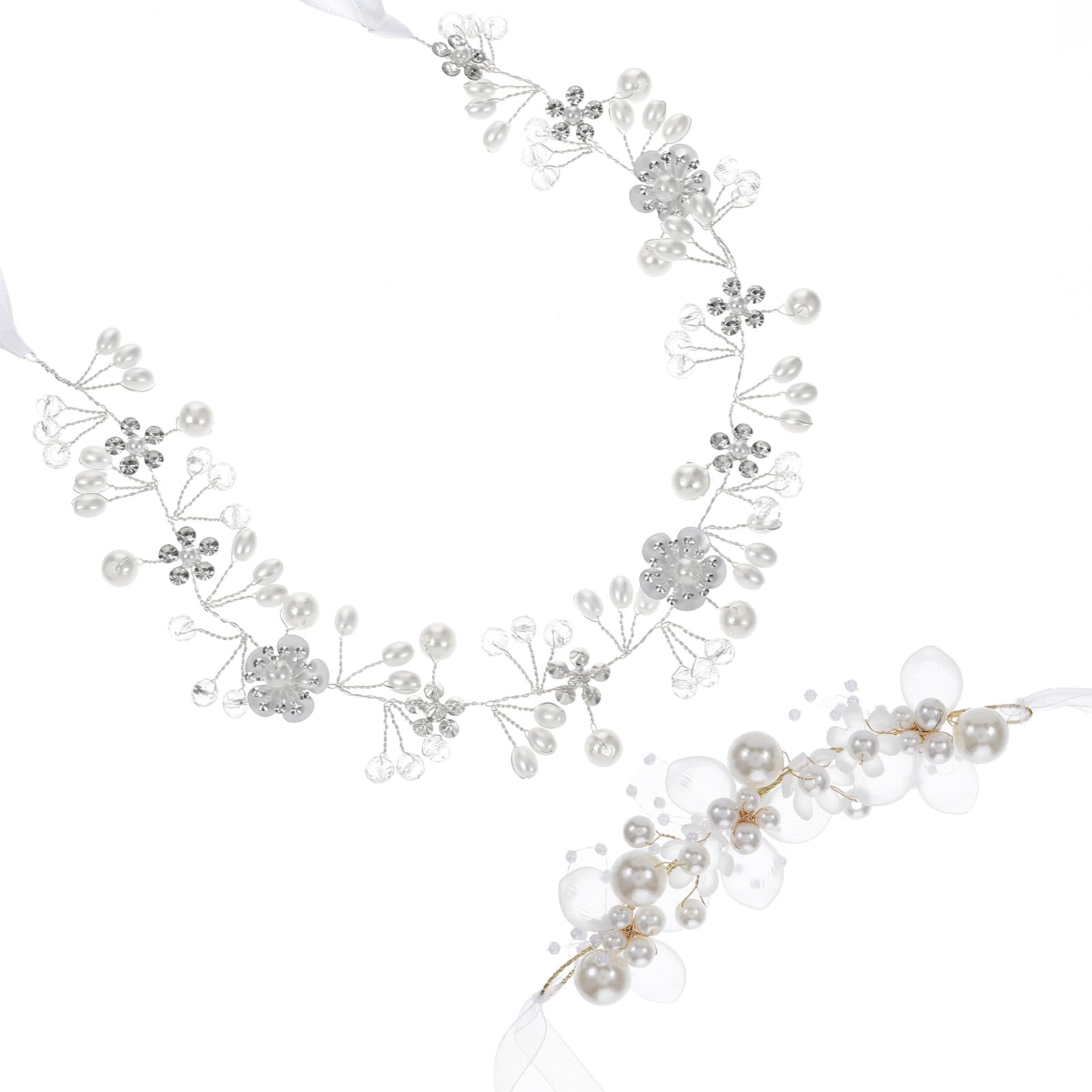 Product Material: Pearls, plastic flowers, rhinestones, brass, alloy, ribbons