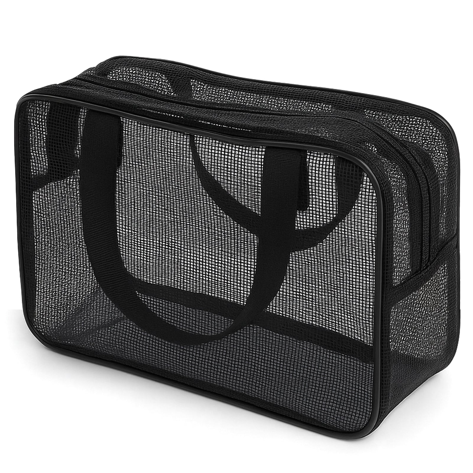 oruola Mesh Shower Bag - Portable Shower Caddy Bag for Bathroom, Gym, Travel, Camping - Black Large, Durable Mesh Construction