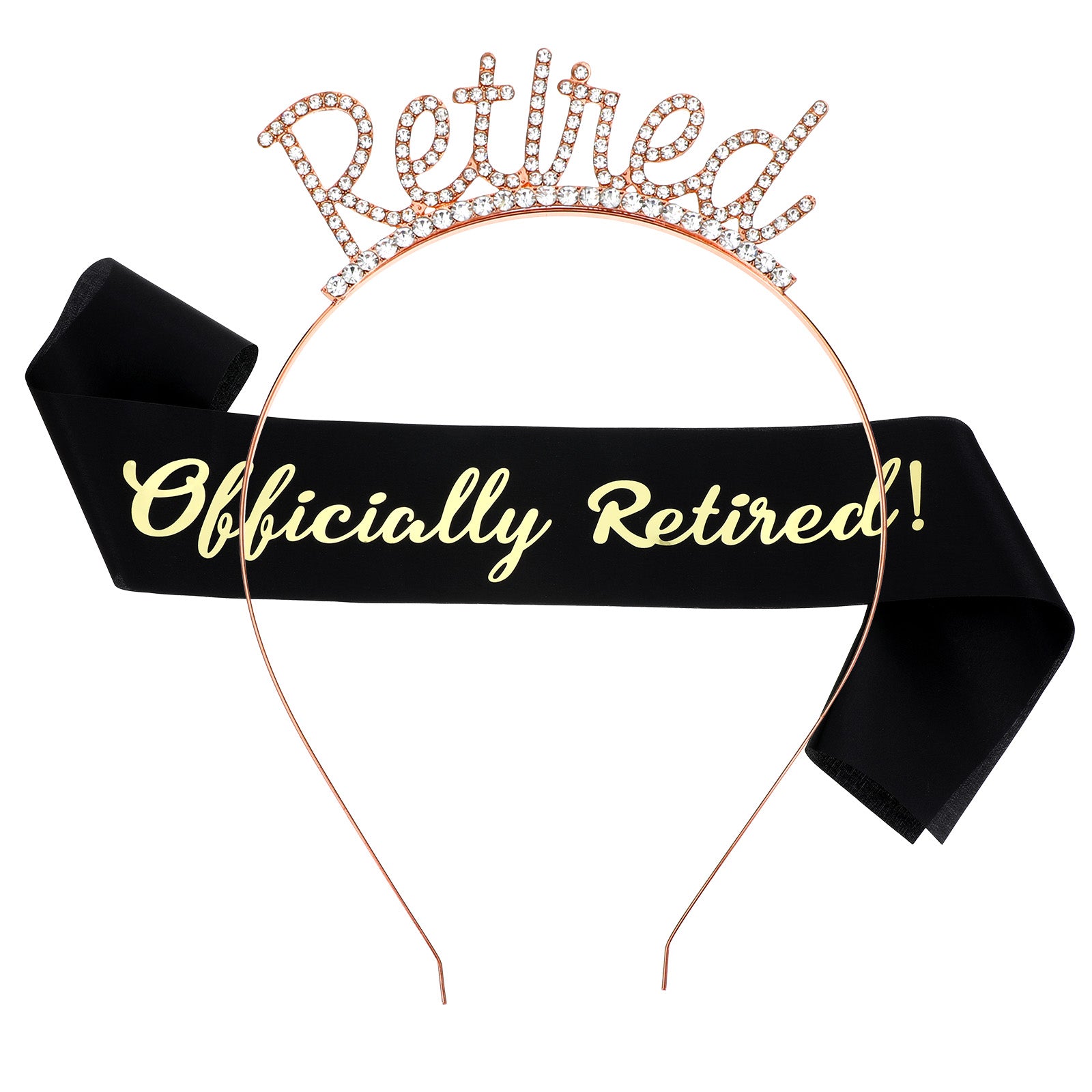 Oruola Retirement Tiara and Sash Set for Women, Gold Retirement Tiara, Officially Retired Sash, Sparkling Headband for Retirement Parties Decorations, Special Event