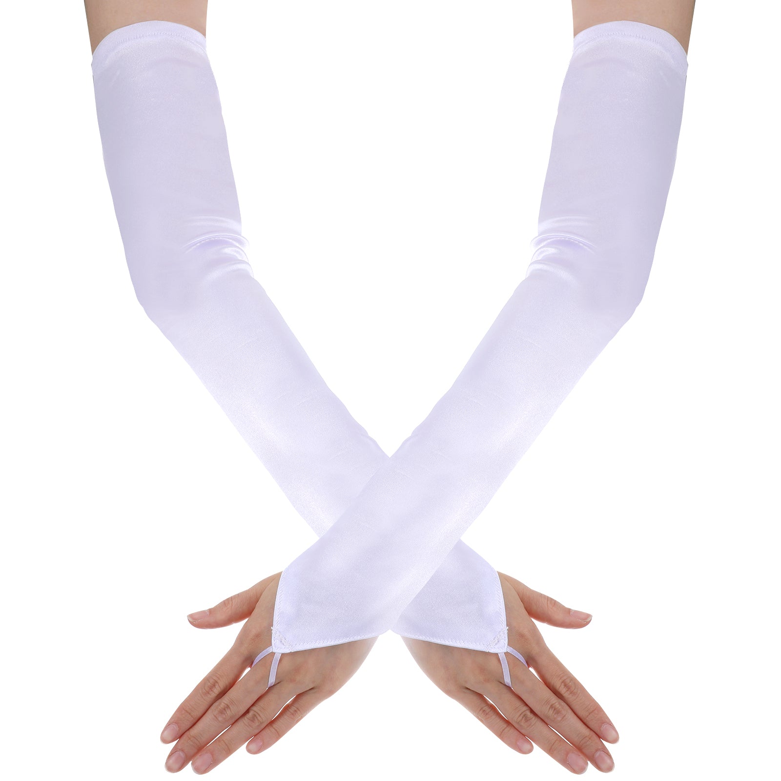 oruola White Fingerless Gloves for Women,Satin Fingerless Gloves Long for Bridal Wedding Party Goth Punk 80s Party Cosplay Costume Accessories,Stretchy Long Glove for Women
