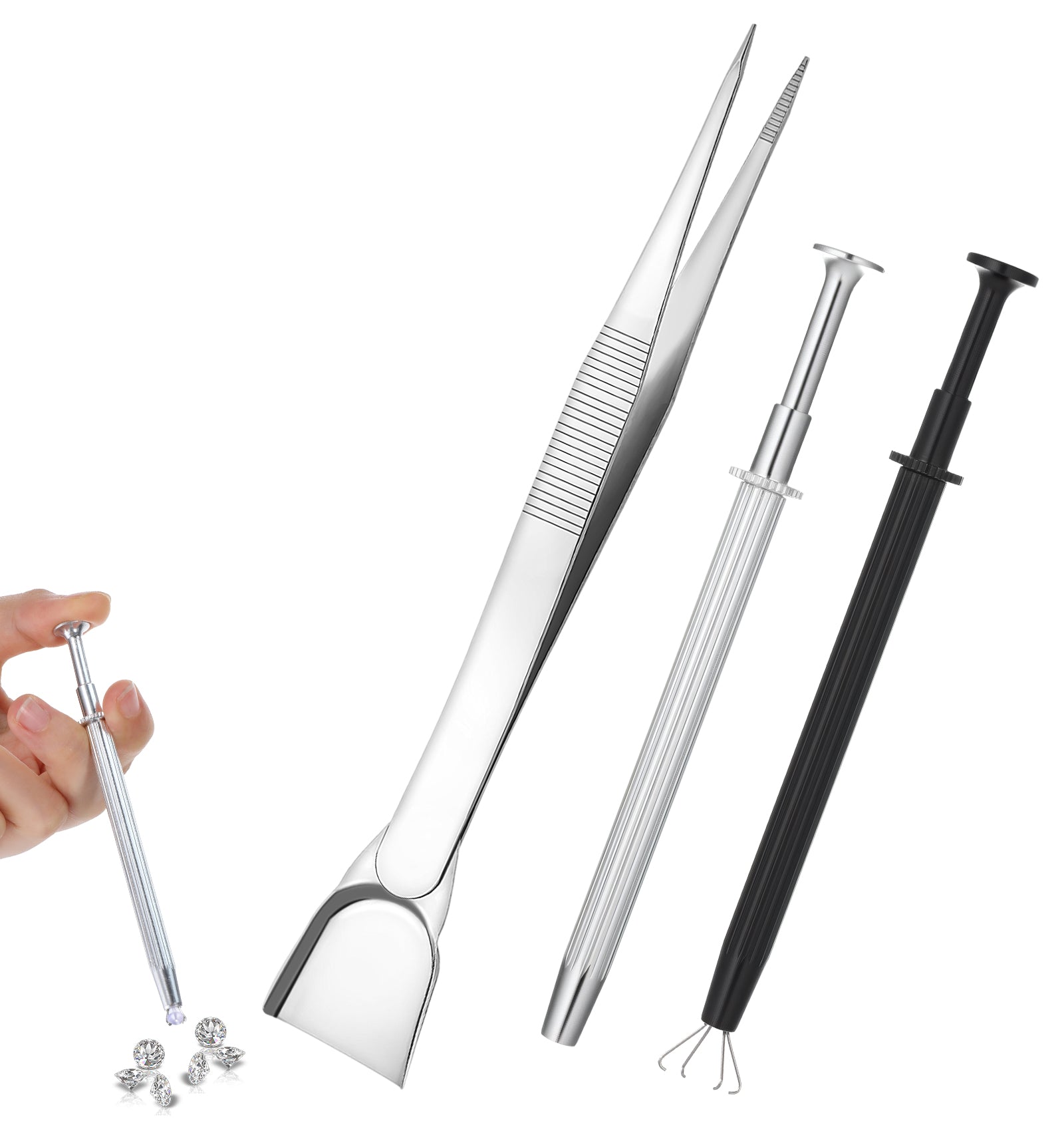 Piercing Grabber Tool, 3 Pcs Piercing Ball Grabber to Change Jewellery, Tiny Objects (Silver, Black)