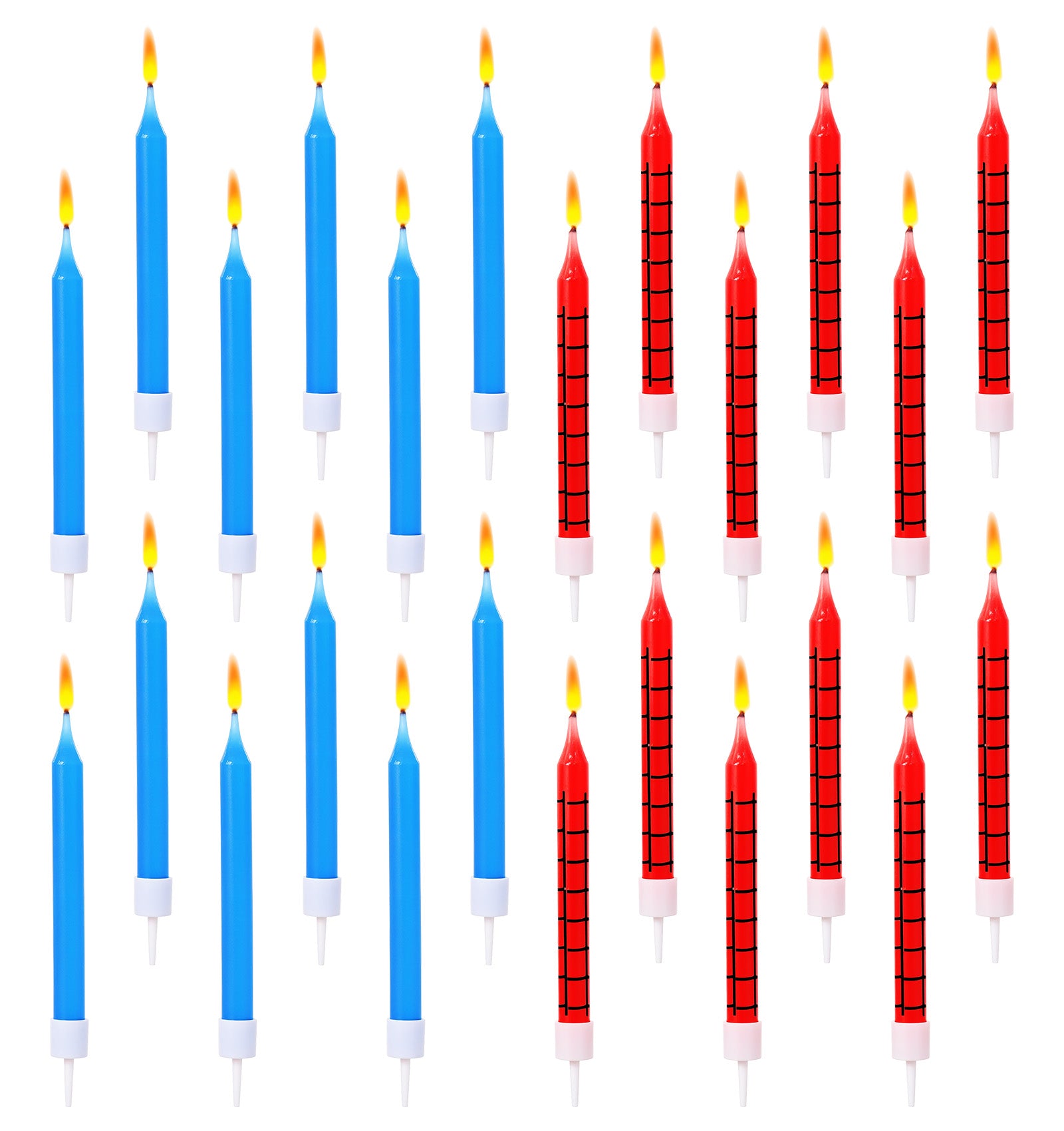 Spiderman Cake Decorations, 24 Pcs Candles of Spider Web Birthday, Spidey Cake Topper for Kids Boys' Birthday Party & Halloween Decor, Red & Blue