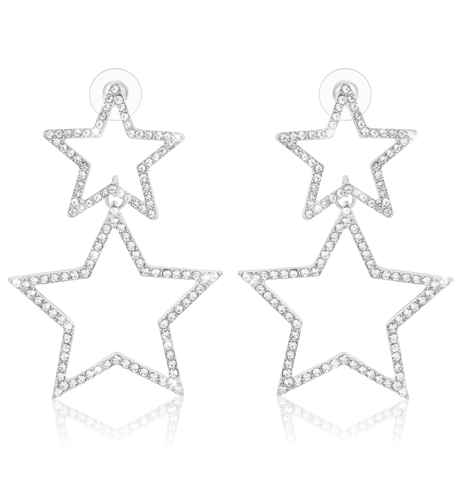 Star Earrings, Silver Dangle pentagram hollow Earrings, Lightweight Anti-sensitive Jewelry, Big Hollow Design for Women, Daily & Party Wear