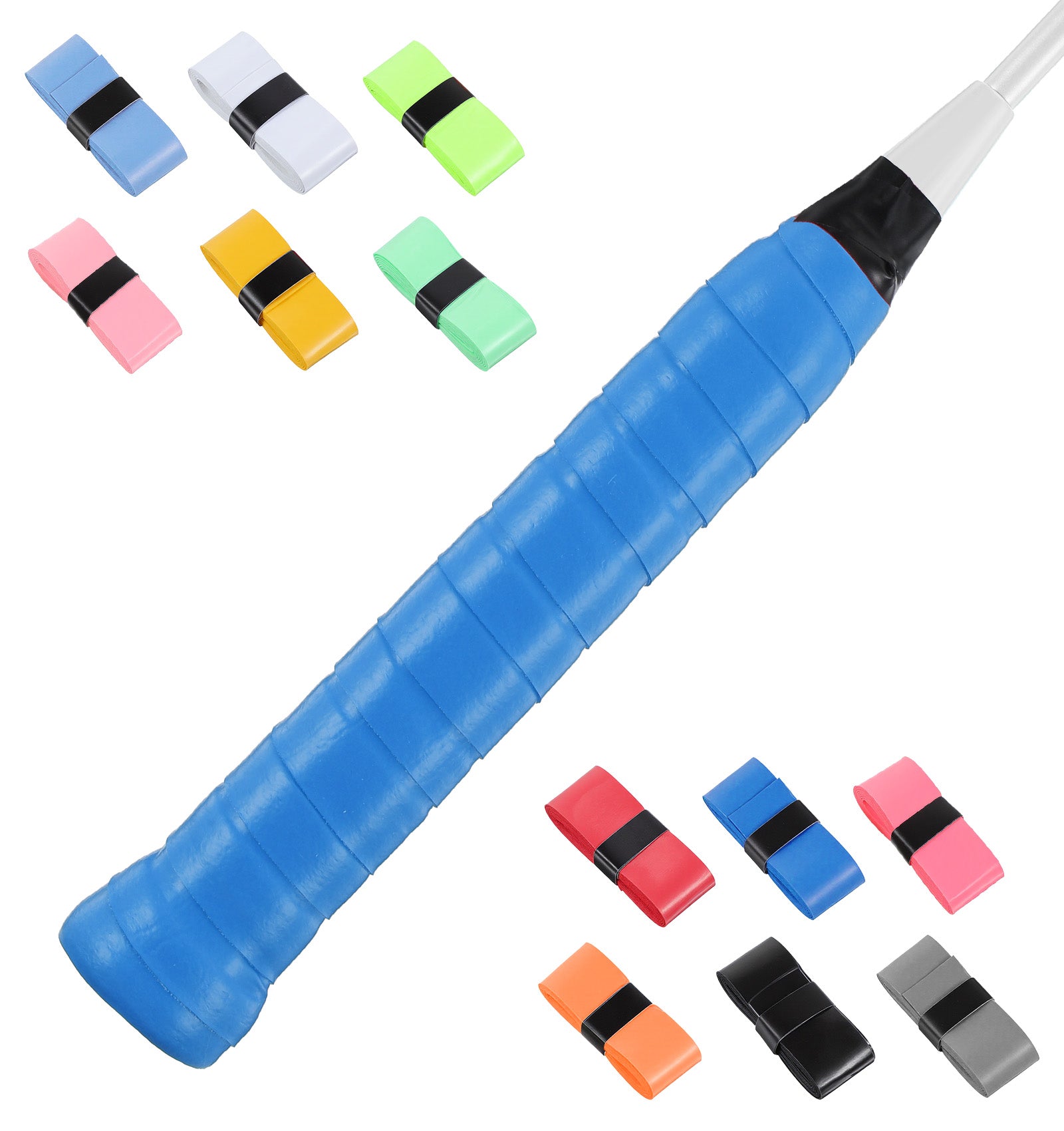Thrymme 12PCS Tennis Racket Grip, Tennis Grips PU Anti-Slip, Sweat Absorbing Handle Wrap for Badminton Pickleball Fishing (Multicolor)