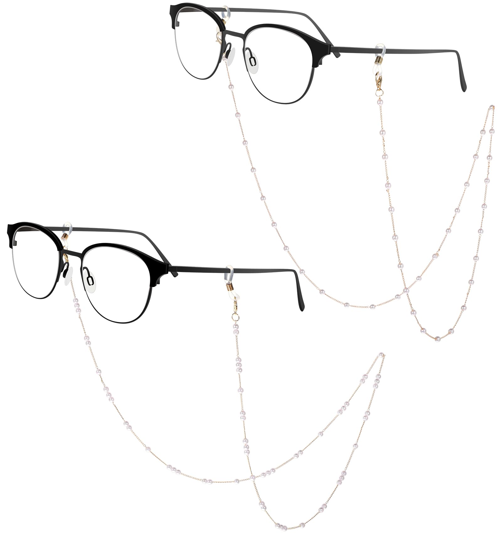 ValueBargain 2 Pack Eye Glasses Chain, Adjustable Chain for Glasses, Pearl Glass String Around Neck for Women Anti-lost, (2 Colors)