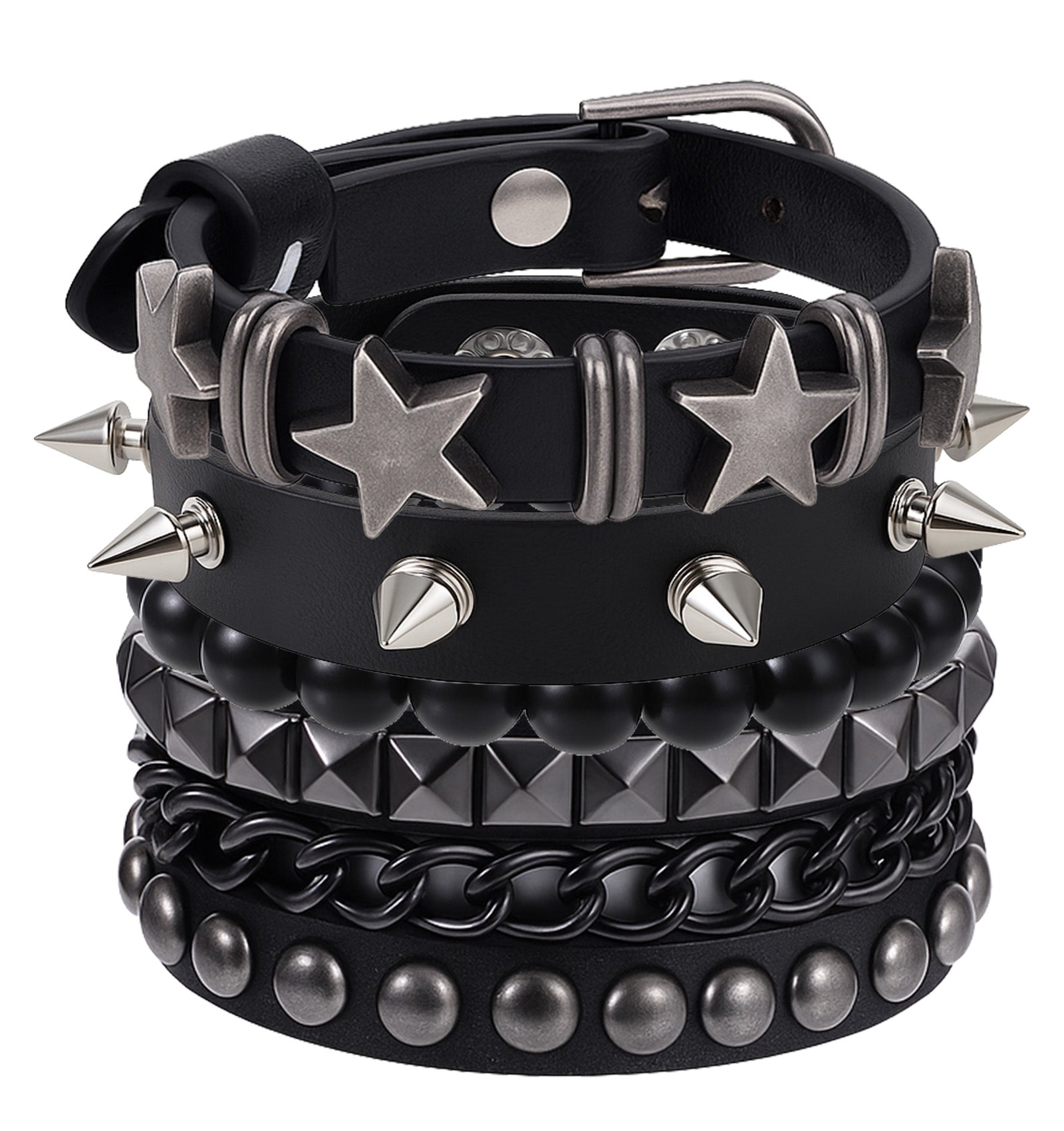 ValueBargain 4PCS Spiked Bracelet, Leather Cuff Punk Bracelet Set, Punk Rock for Men Women 80s Emo Goth Christmas Halloween Costumes
